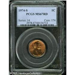 <B>1974-S 1C MS67 Red PCGS.</B></I> Lustrous coppery-gold surfaces are impeccably well preserved, and the devices exhibit bold impressions. Lot:5592