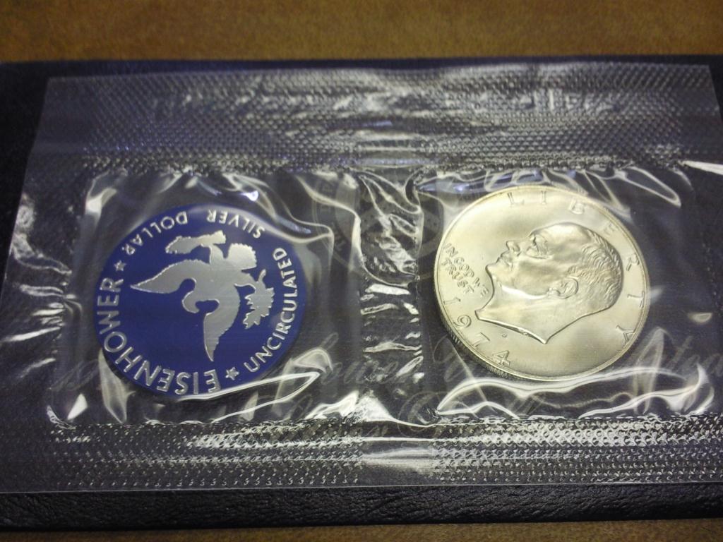 1974-S IKE SILVER DOLLAR (UNC) (BLUE PACK)