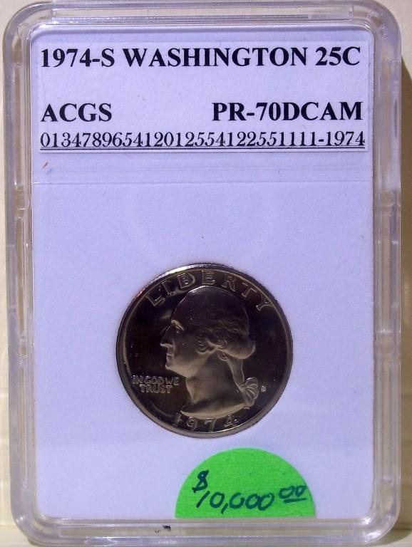 1974 San Francisco Mint Washington Quarter Dollar, ACGS certified and graded PROOF 70 DEEP CAMEO! Cream of the crop, the top of the line. None better, EVER!