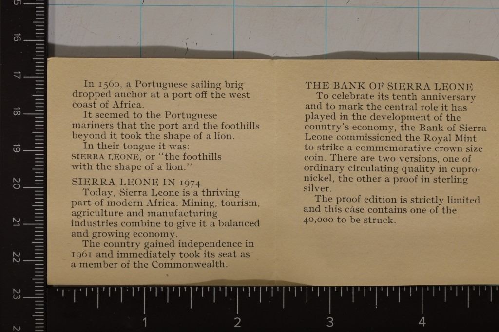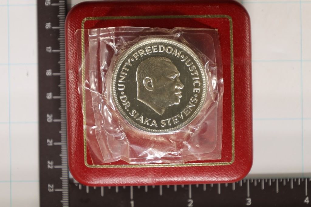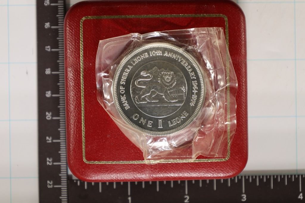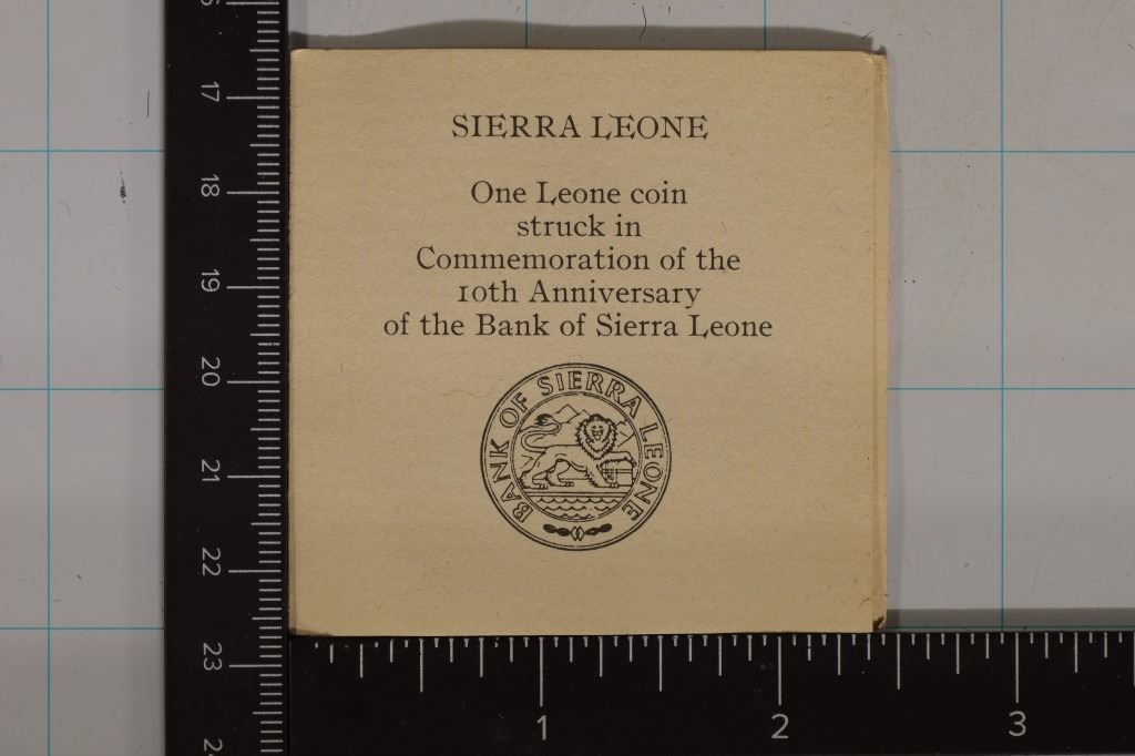WITH PAPERWORK STATING THE LIMITED MINTAGE OF ONLY 40,000 PIECES IN ORIGINAL MINT PACKAGING. THIS IS TO CELEBRATE IT'S 10TH ANNIVERSARY OF THE BANK OF SIERRA LEONE