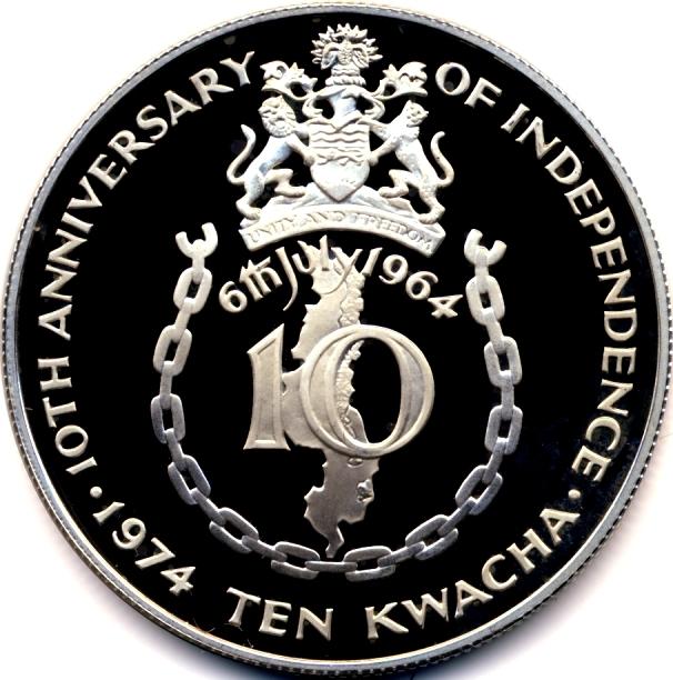 1974 SILVER 10 KWACHA-MALAWI-NICE PROOF