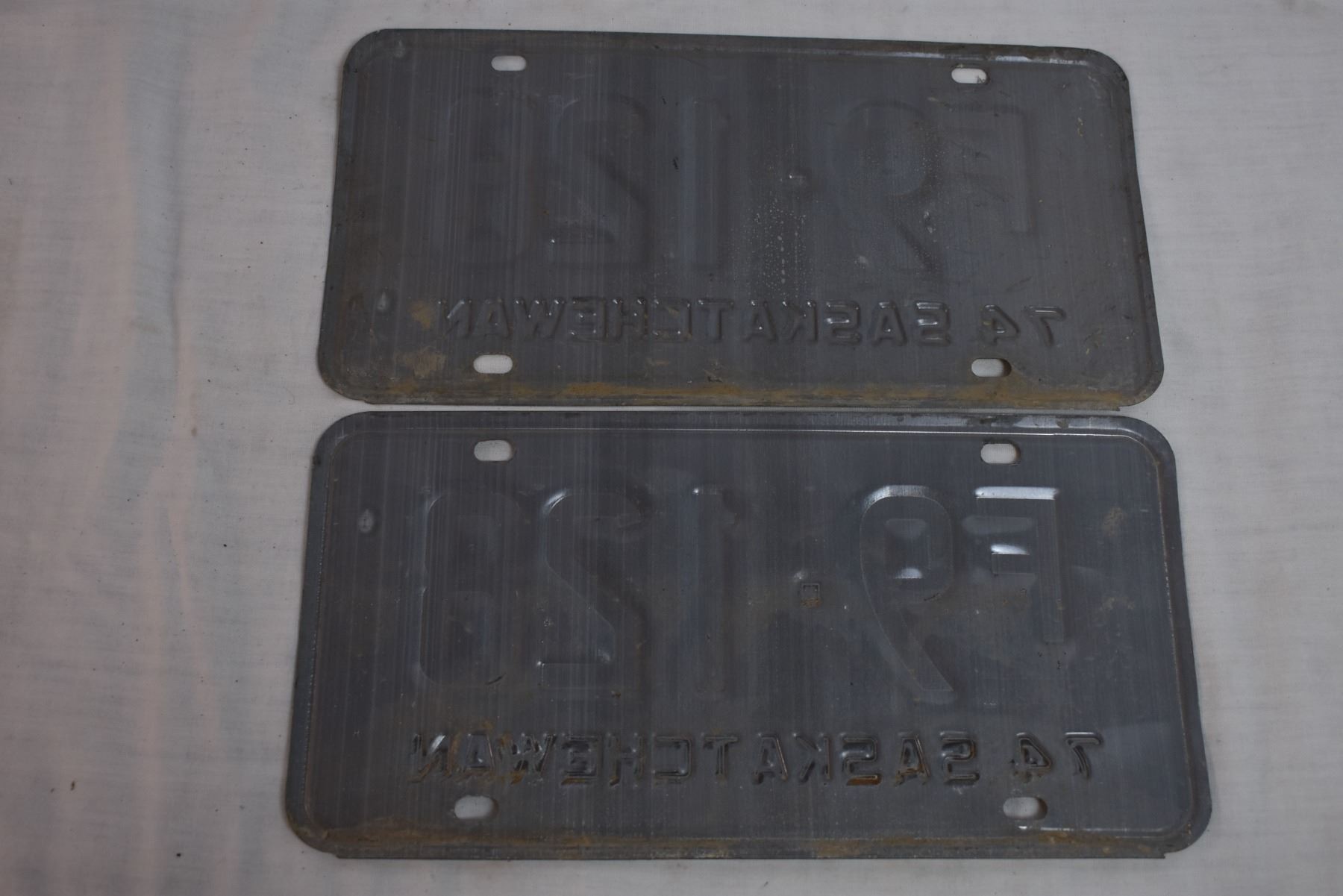 1974 Sask Farm License Plate Pair