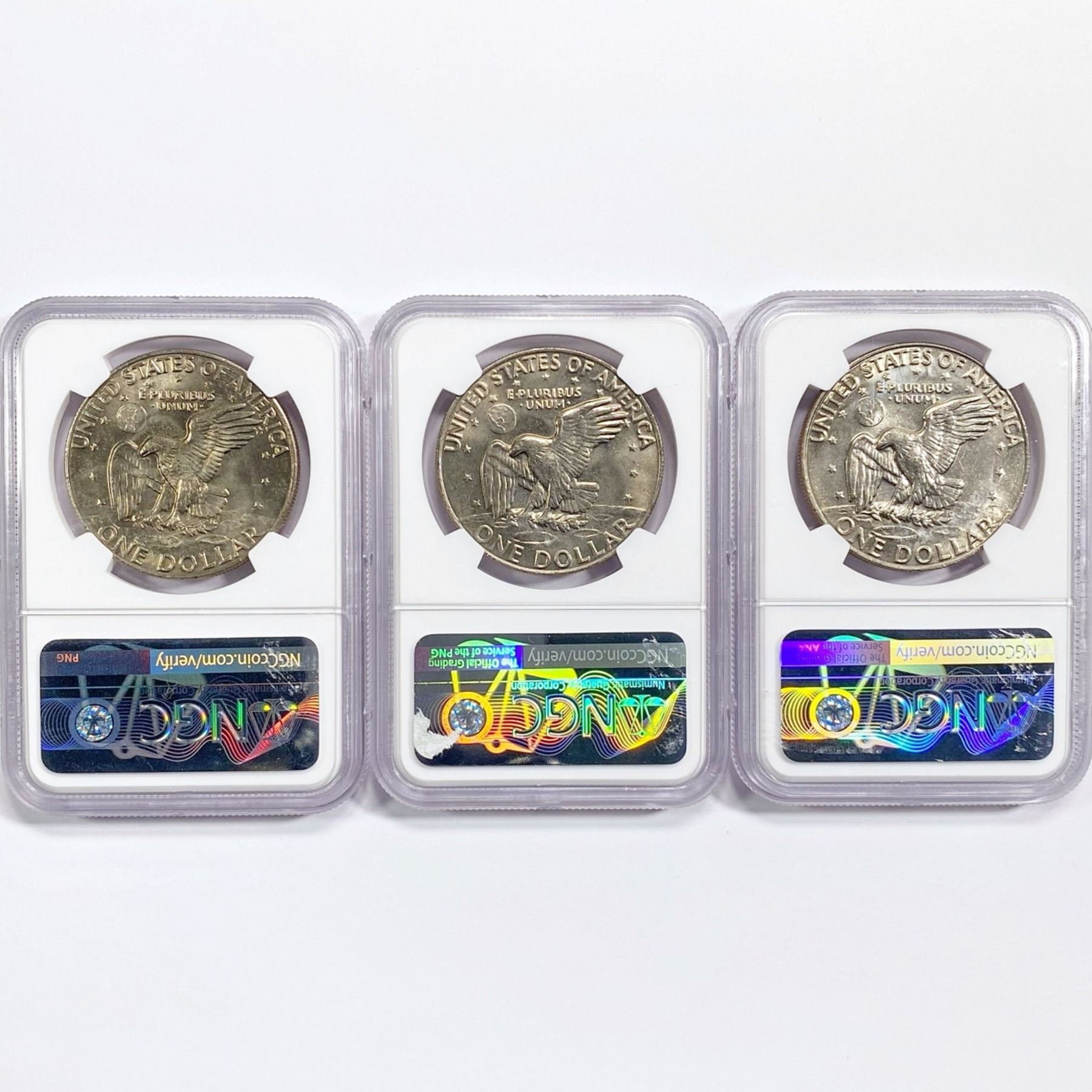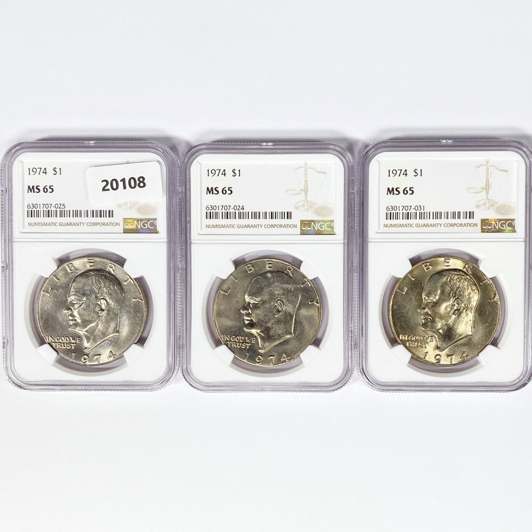 1974 Set (3) Eisenhower Silver Dollars NGC MS65