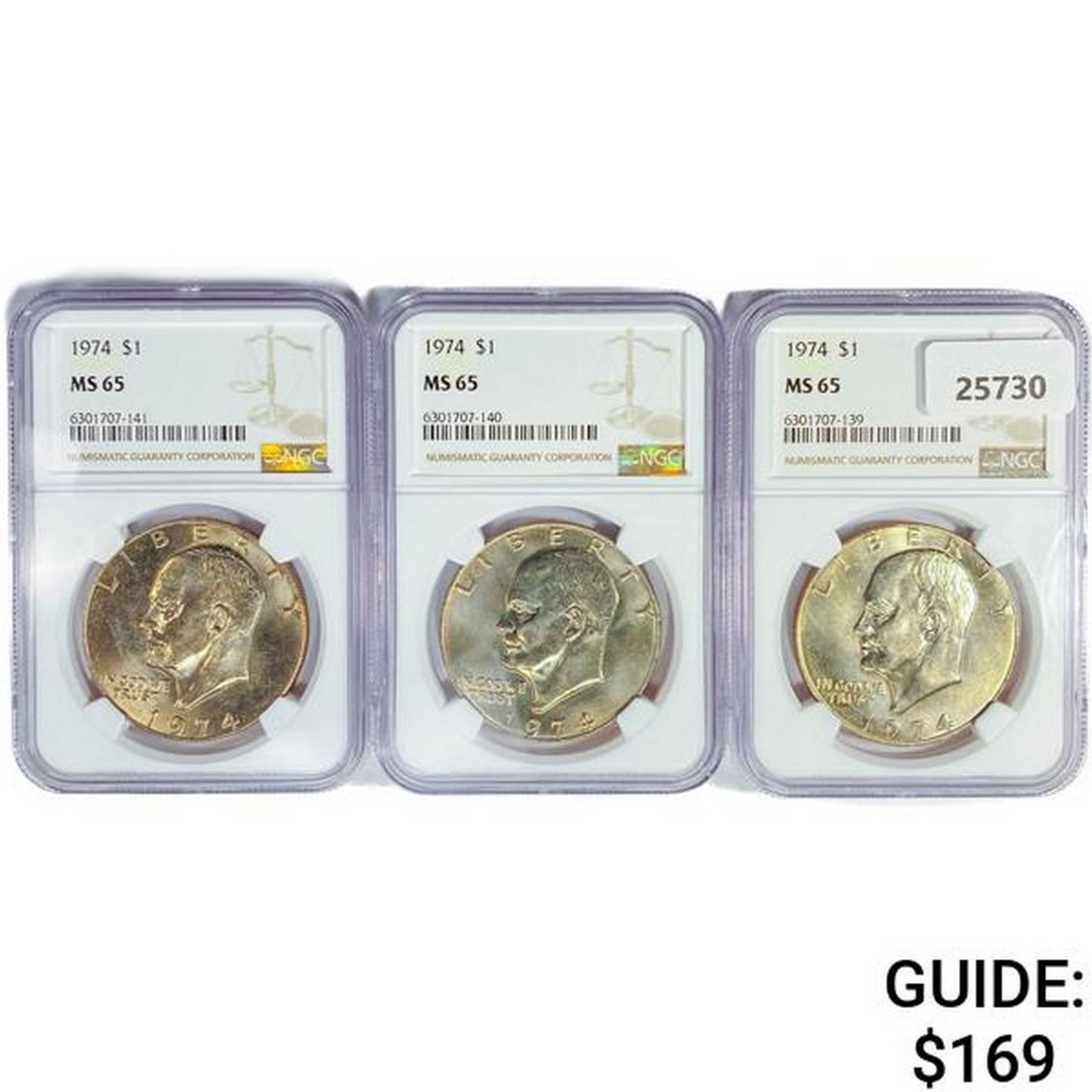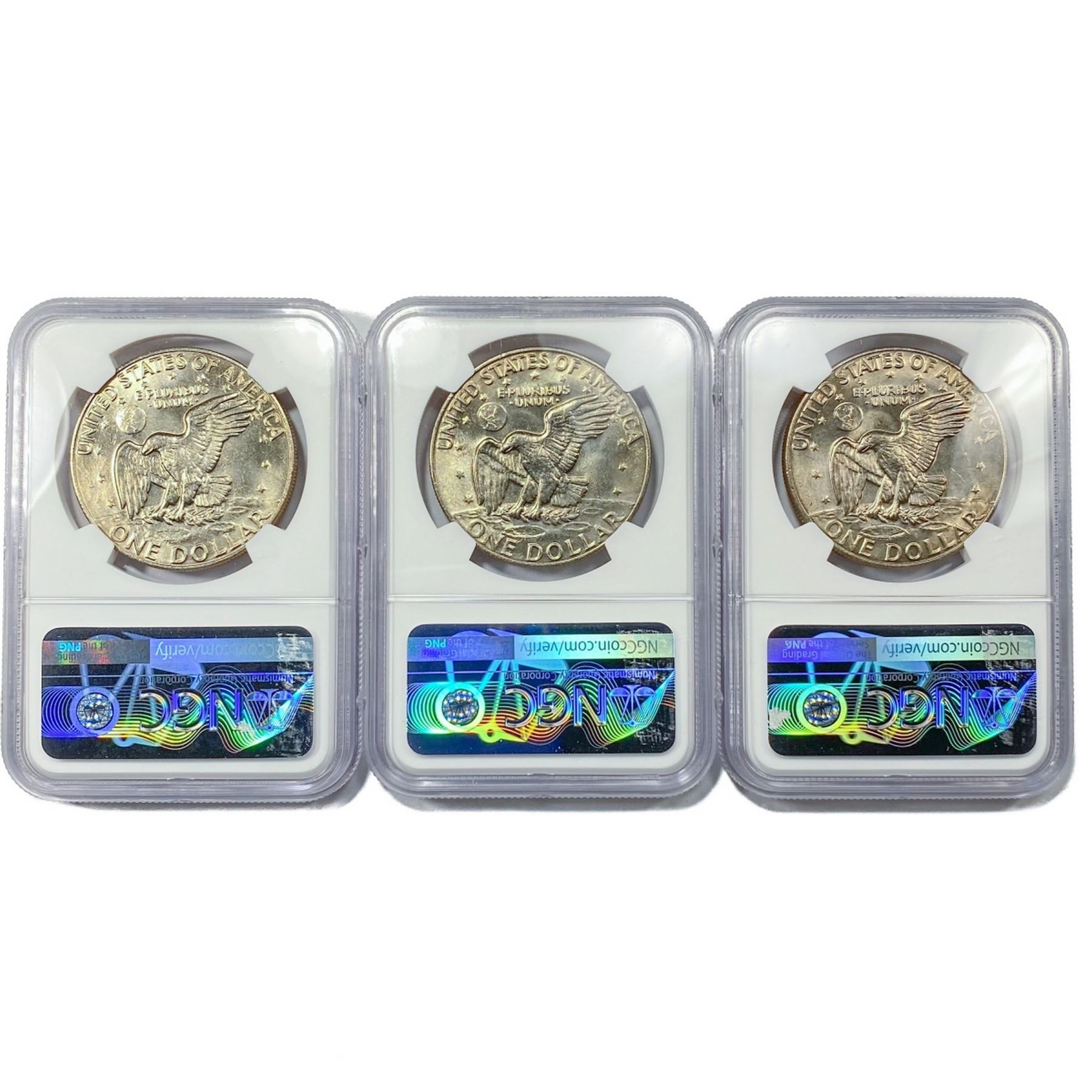1974 Set (3) Eisenhower Silver Dollars NGC MS65