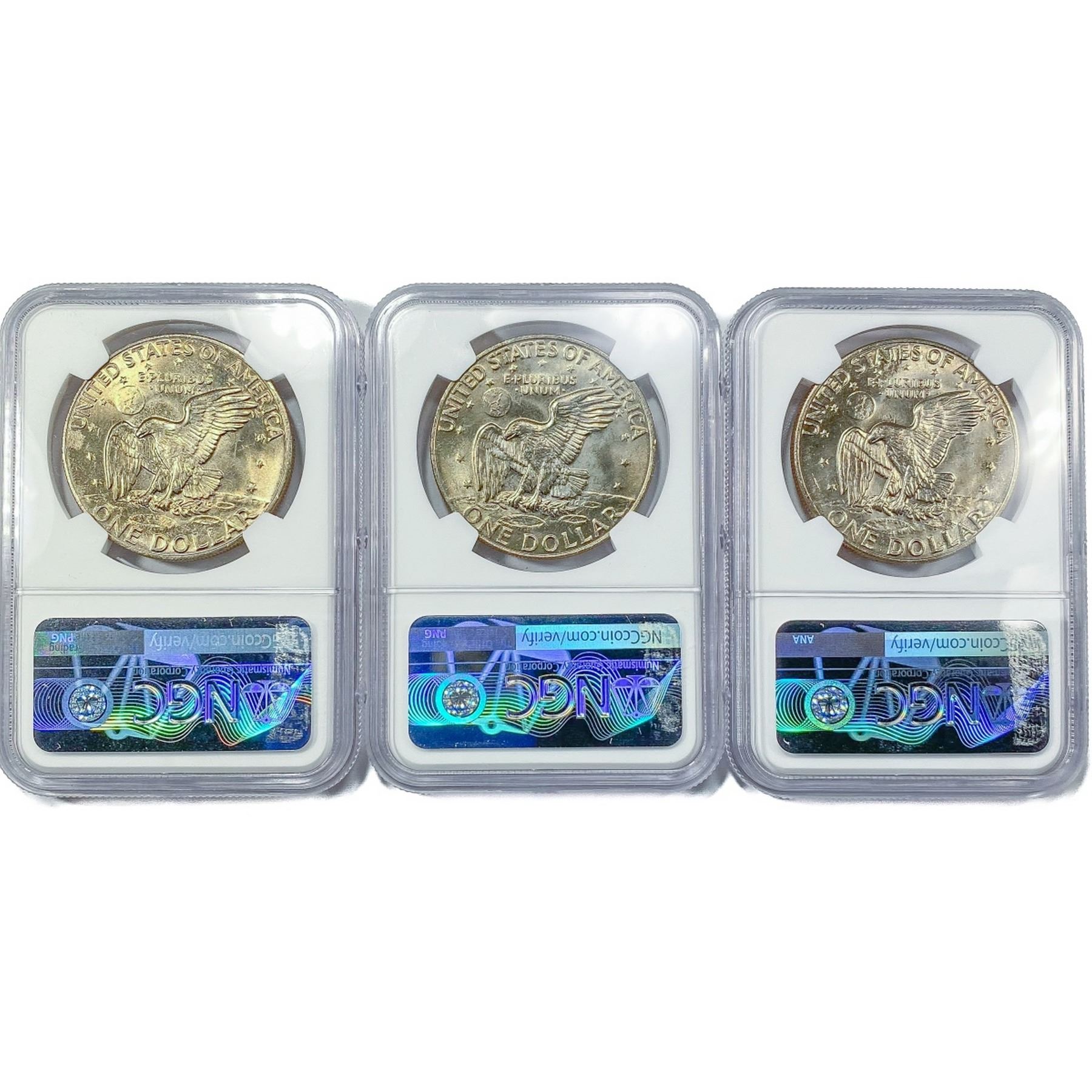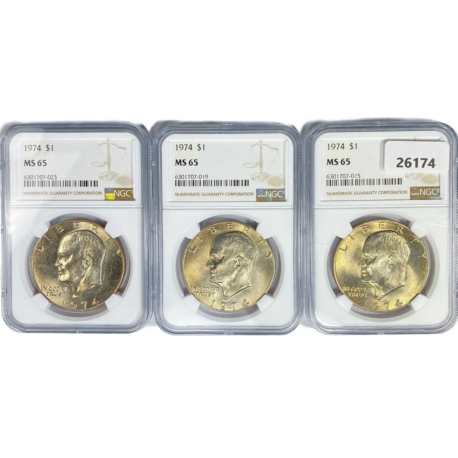 1974 Set (3) Eisenhower Silver Dollars NGC MS65
