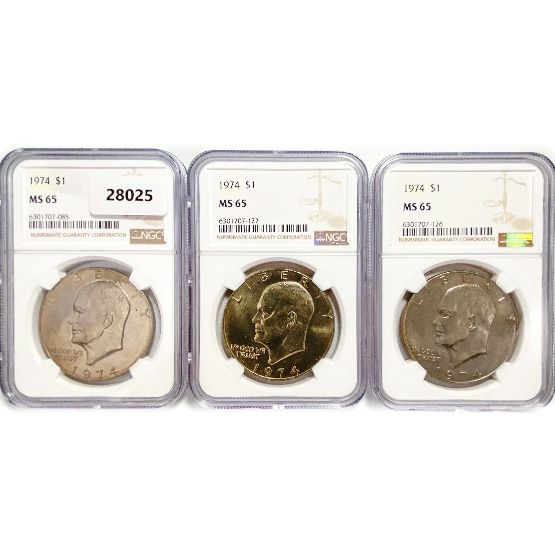1974 Set (3) Eisenhower Silver Dollars NGC MS65