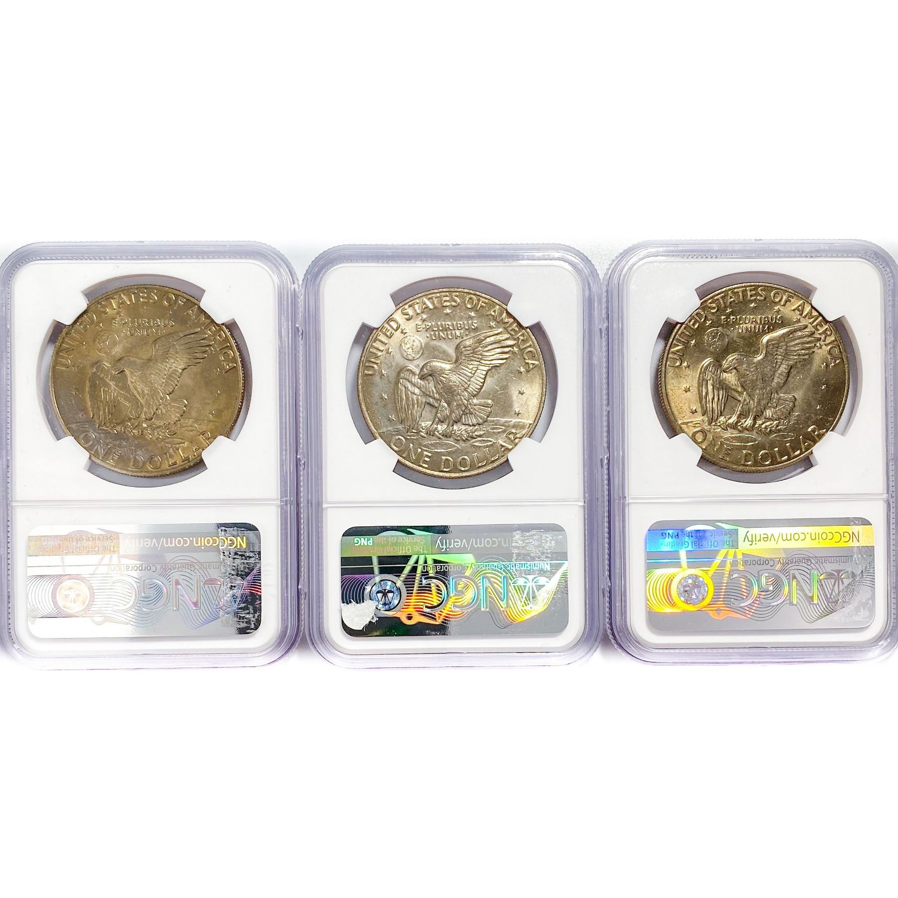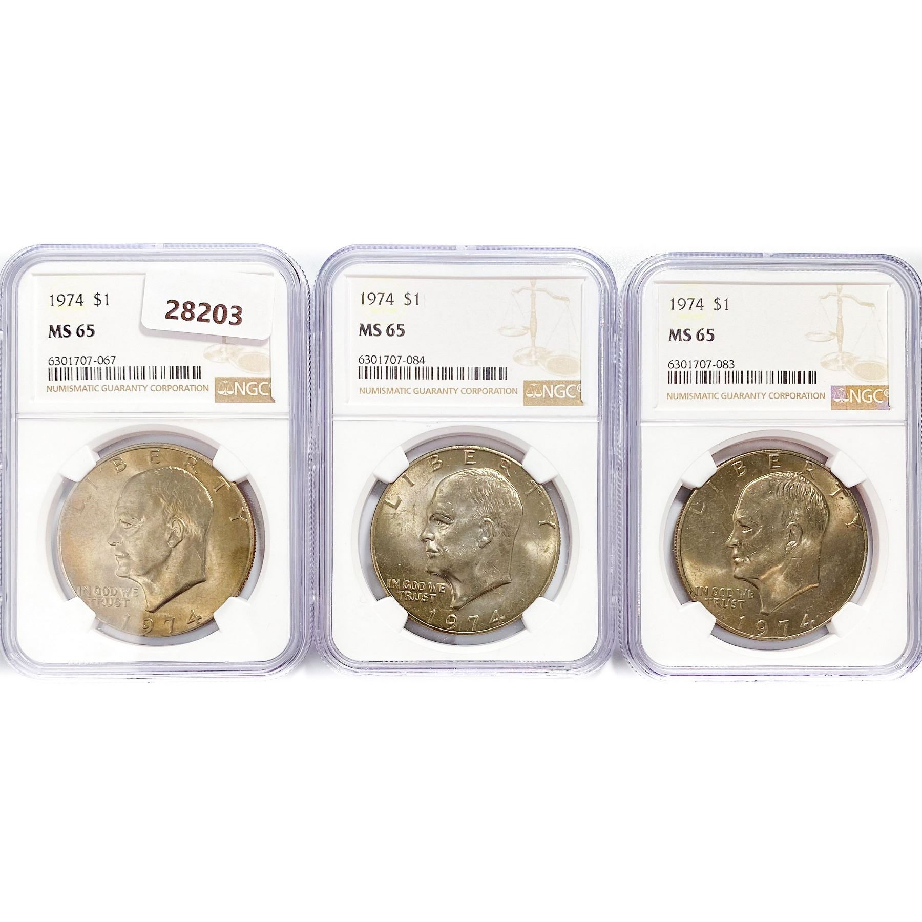 1974 Set (3) Eisenhower Silver Dollars NGC MS65