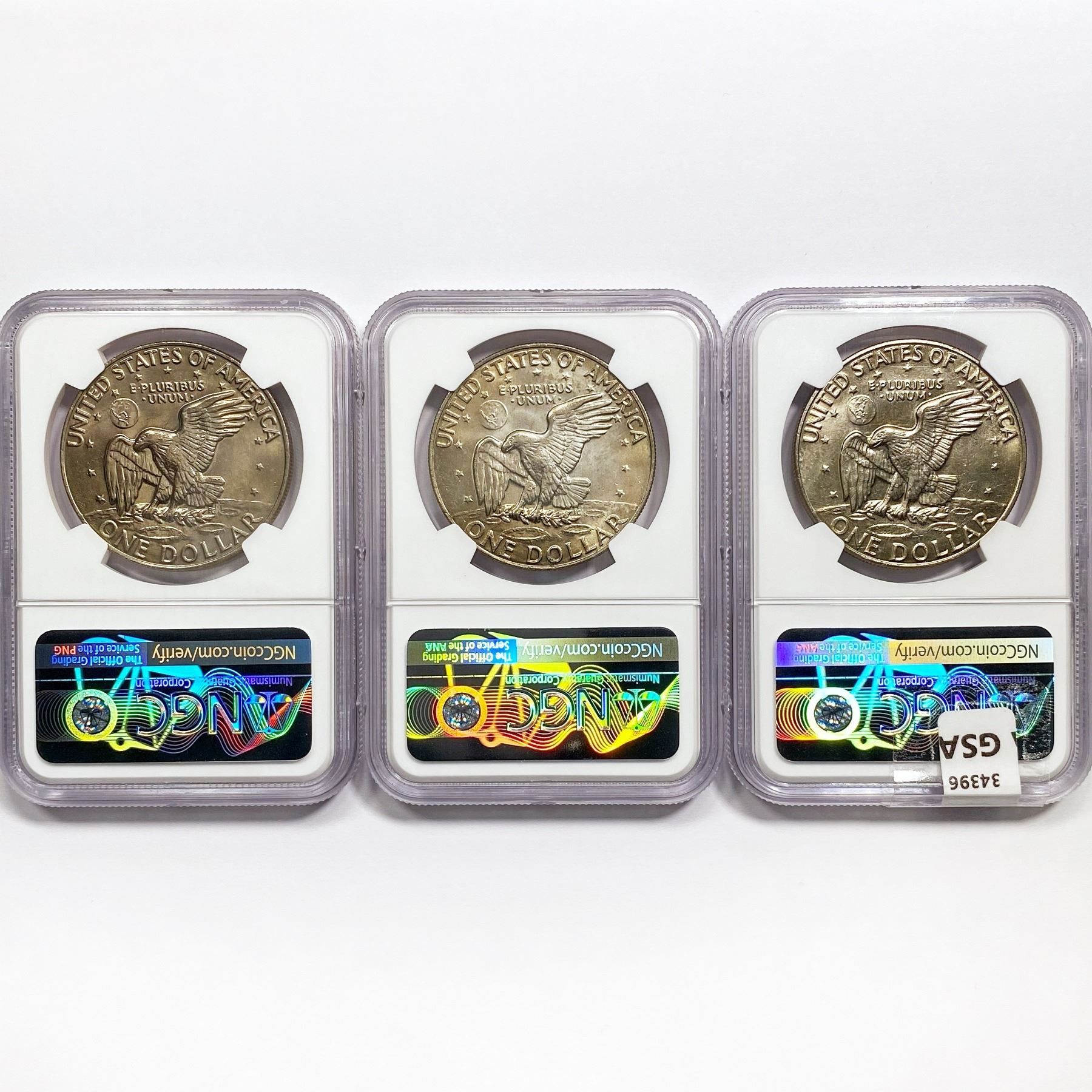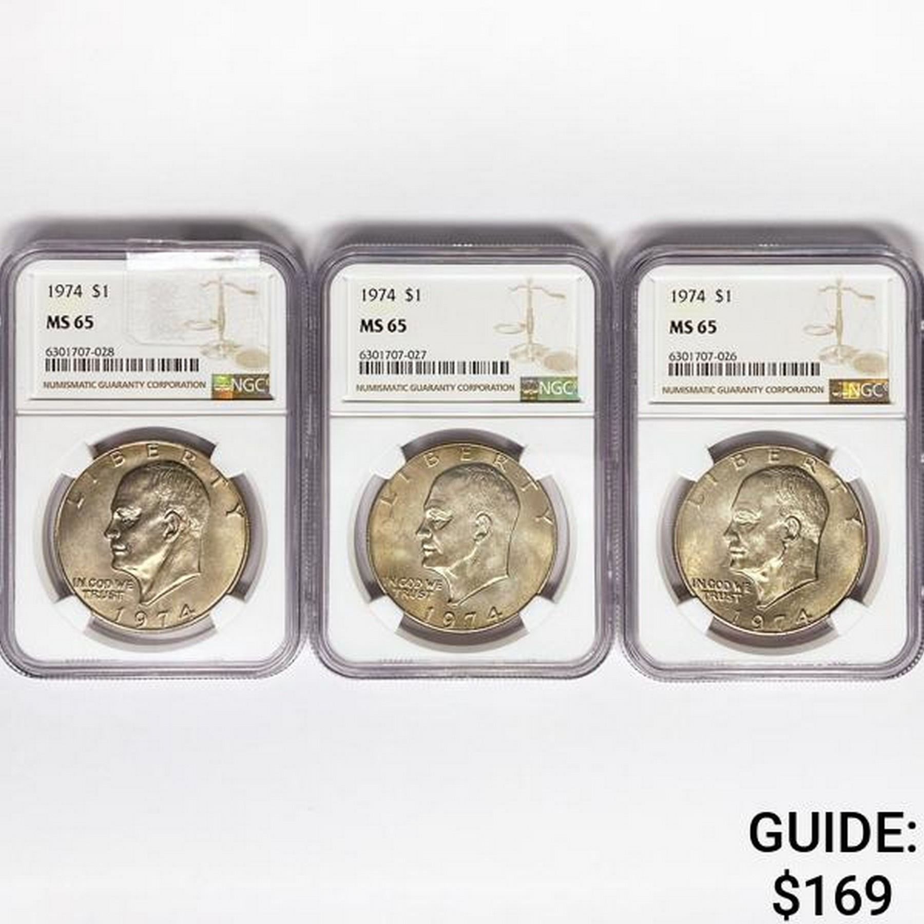 1974 Set (3) Eisenhower Silver Dollars NGC MS65