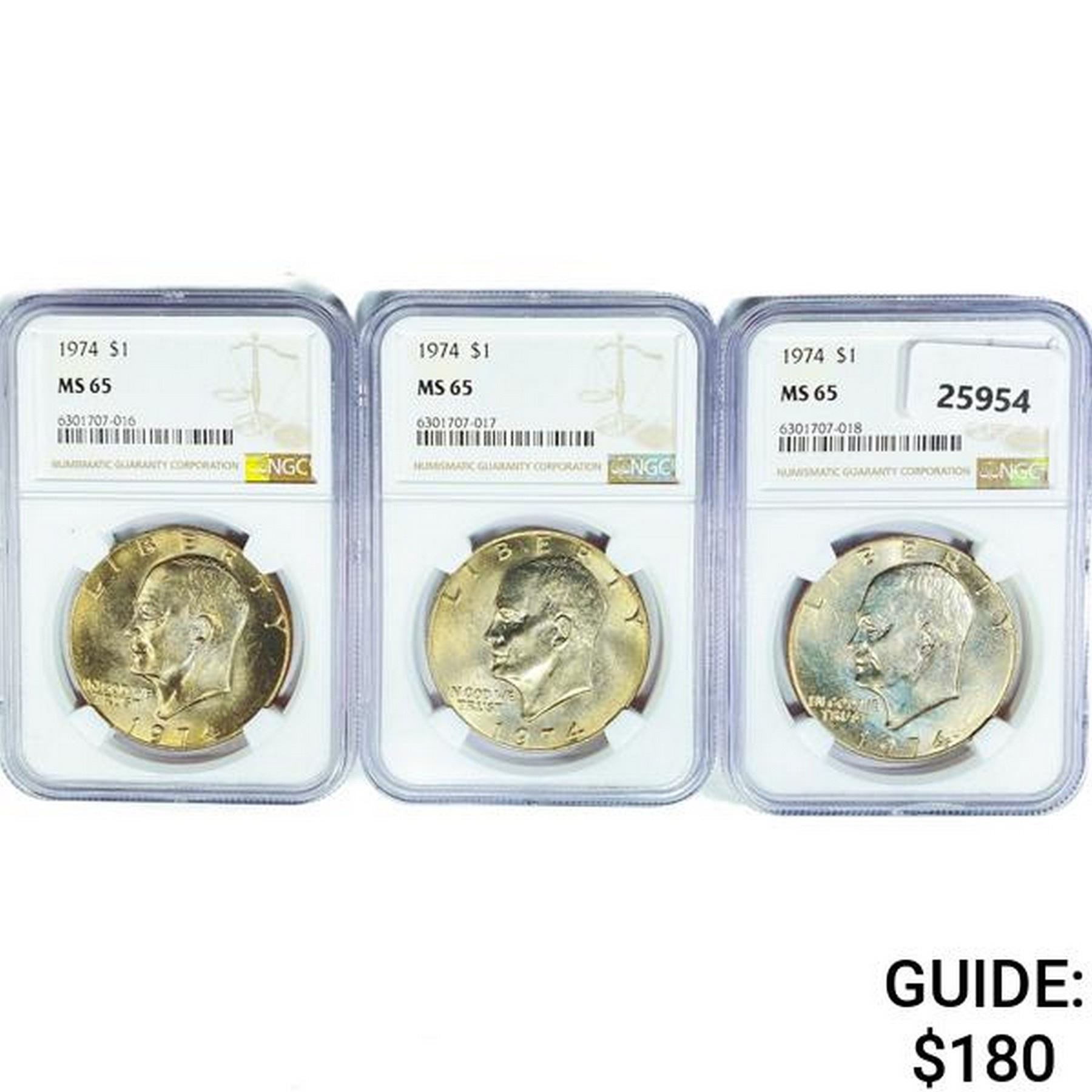 1974 Set [3] Eisenhower Silver Dollars NGC MS65