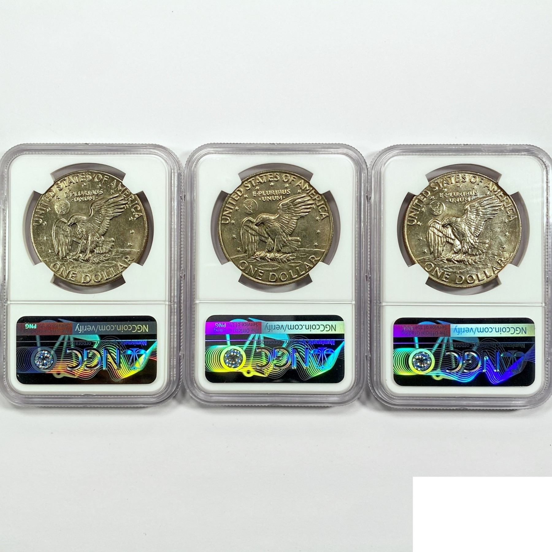 1974 Set [3] Eisenhower Silver Dollars NGC MS65