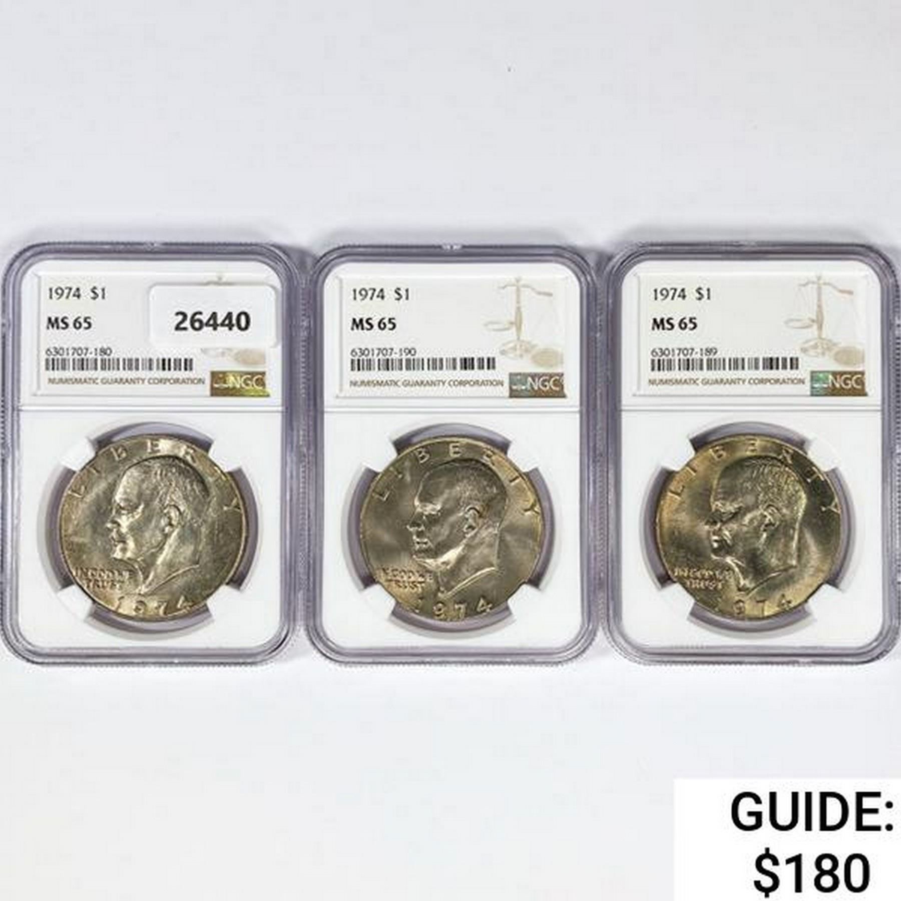 1974 Set [3] Eisenhower Silver Dollars NGC MS65