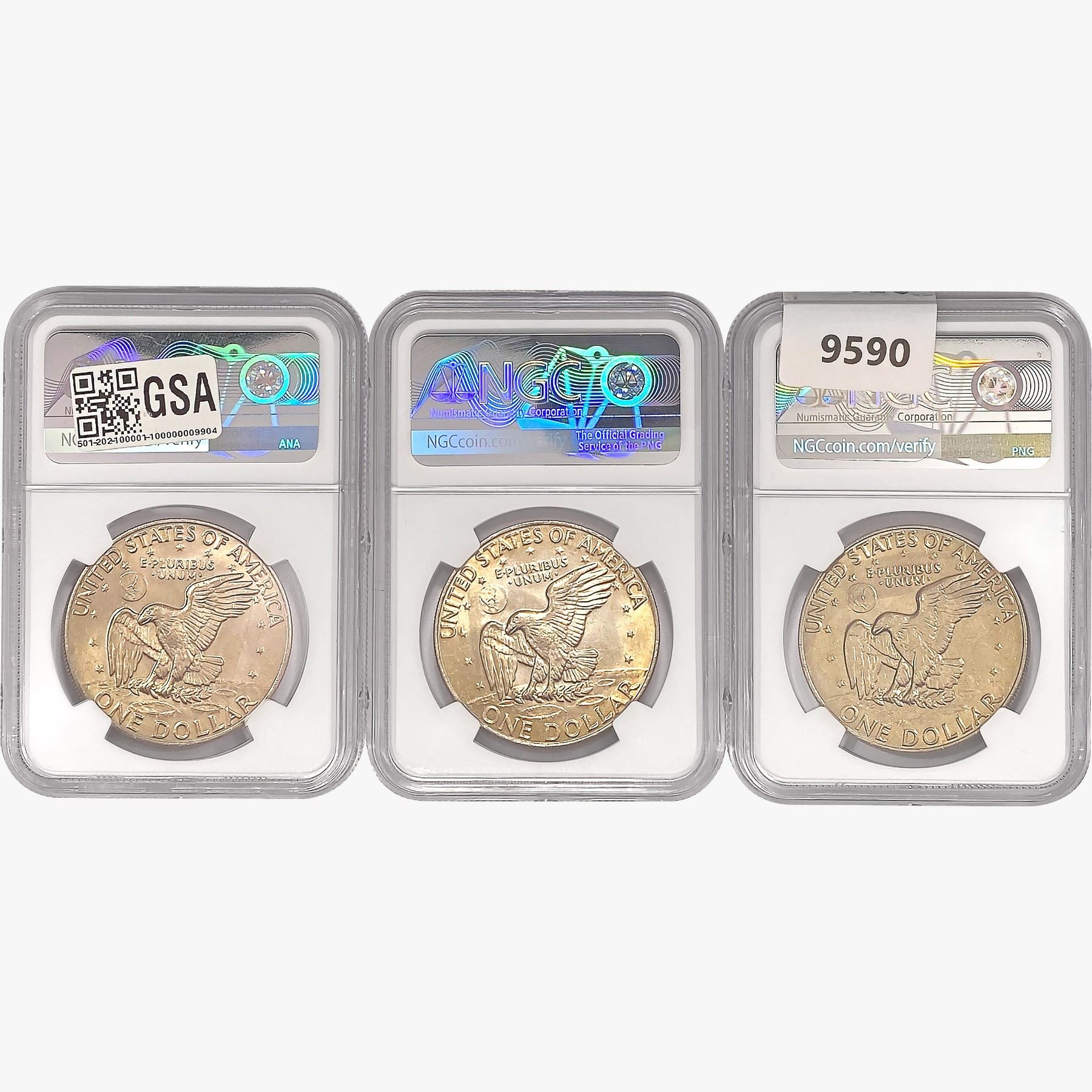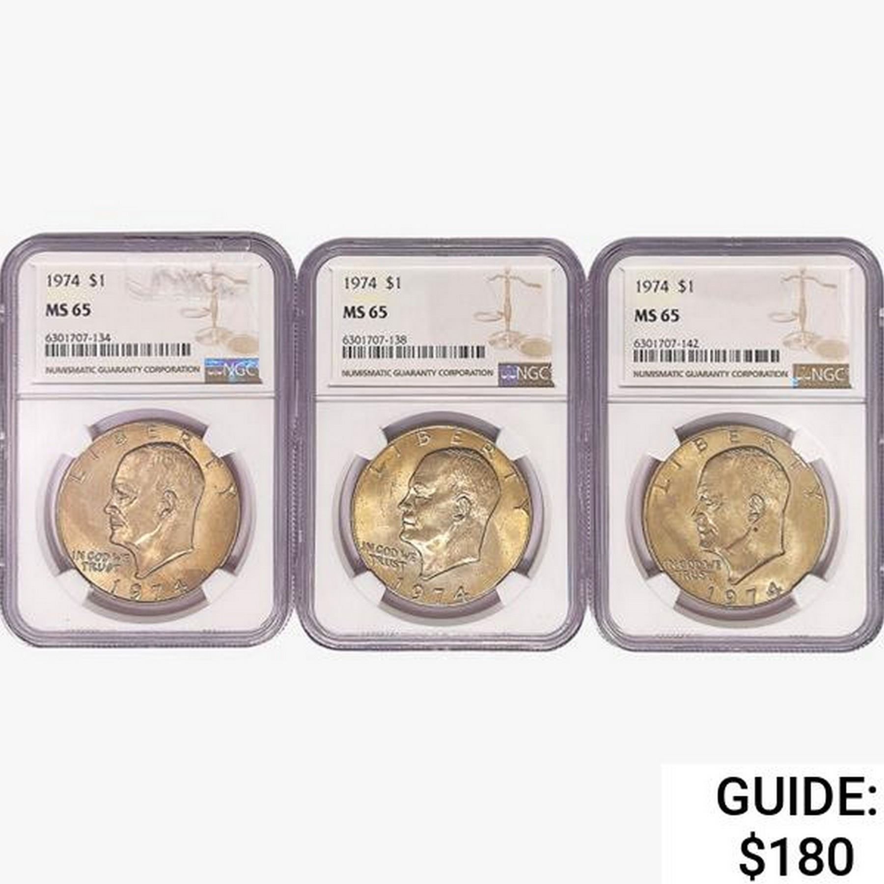 1974 Set [3] Eisenhower Silver Dollars NGC MS65
