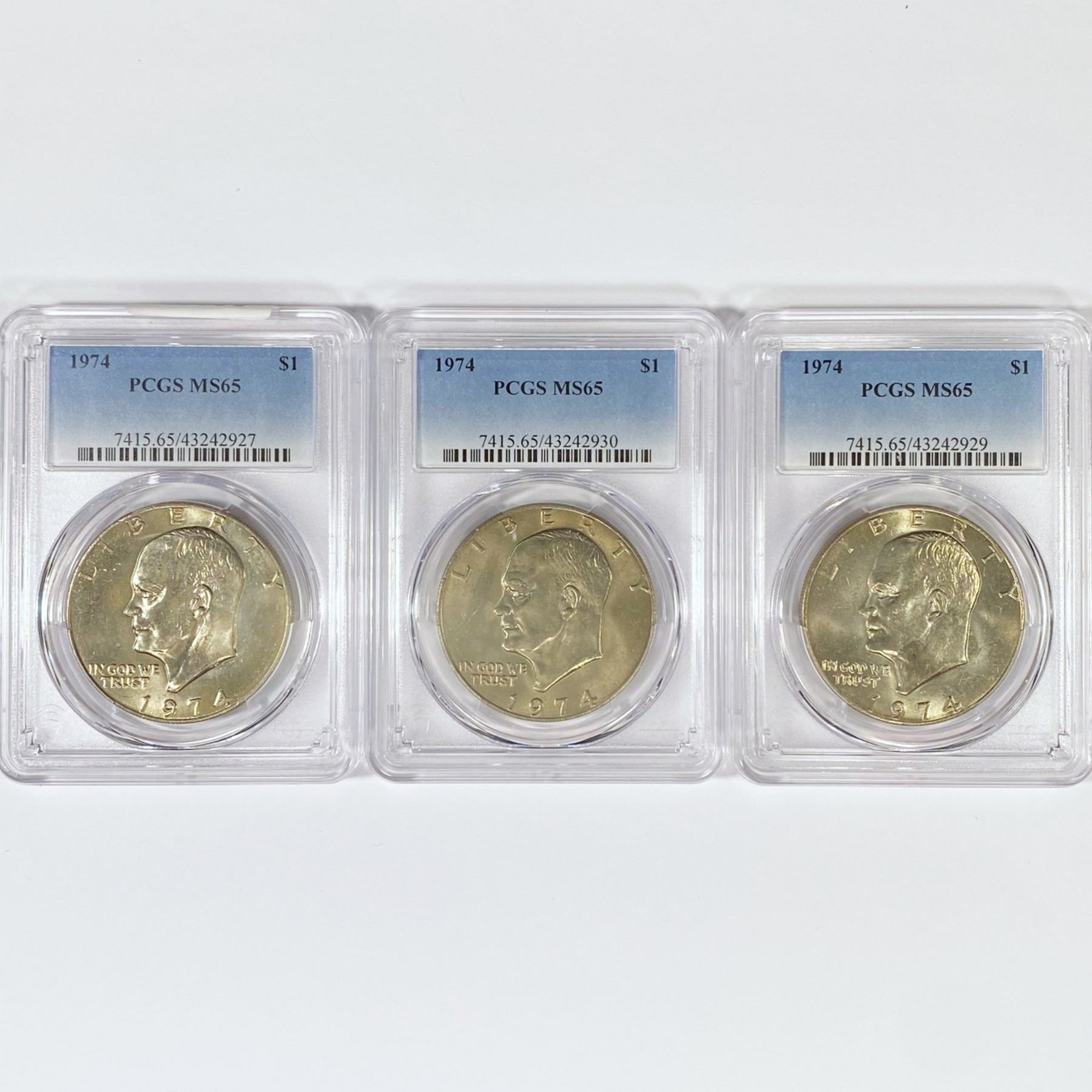 1974 Set (3) Eisenhower Silver Dollars PCGS MS65