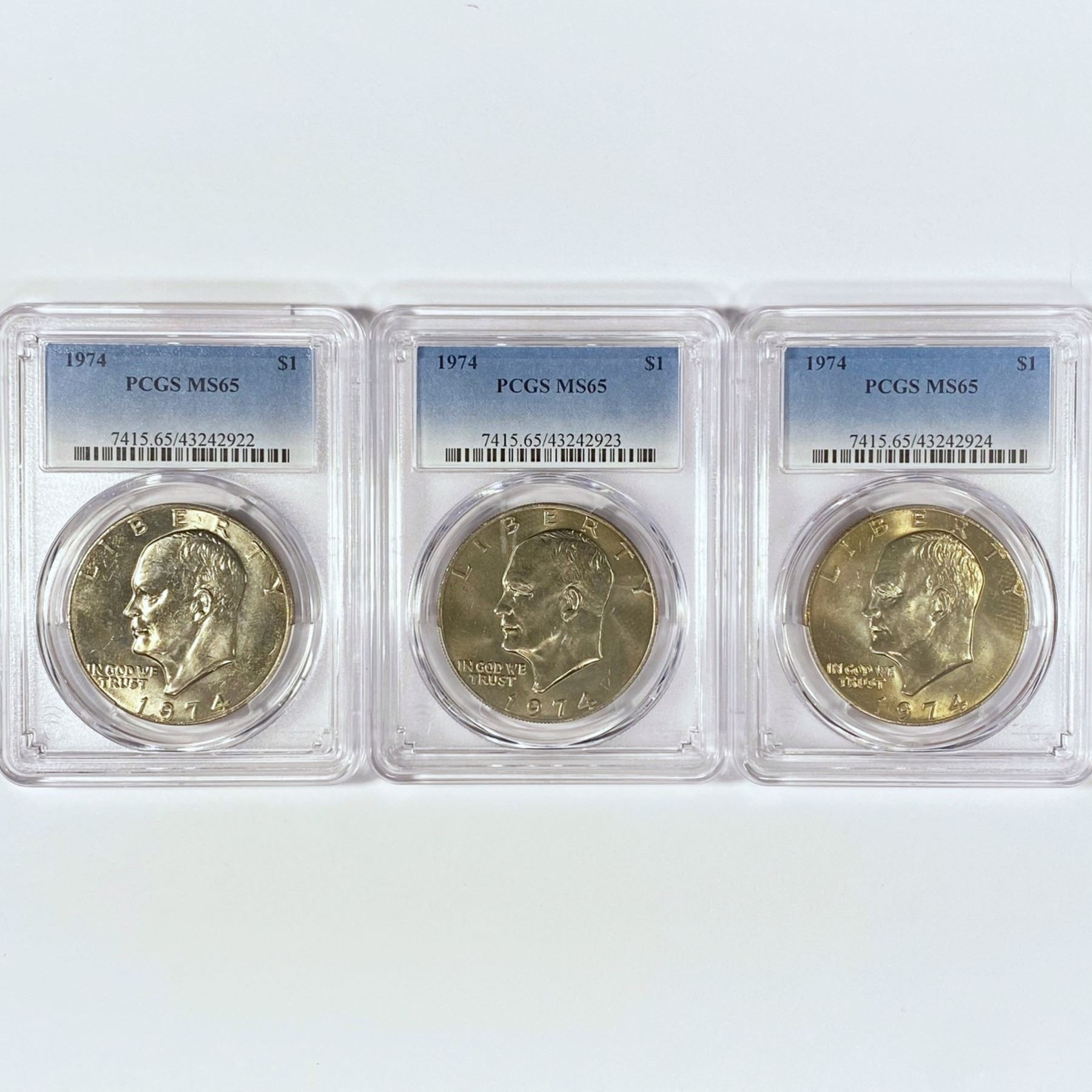 1974 Set (3) Eisenhower Silver Dollars PCGS MS65
