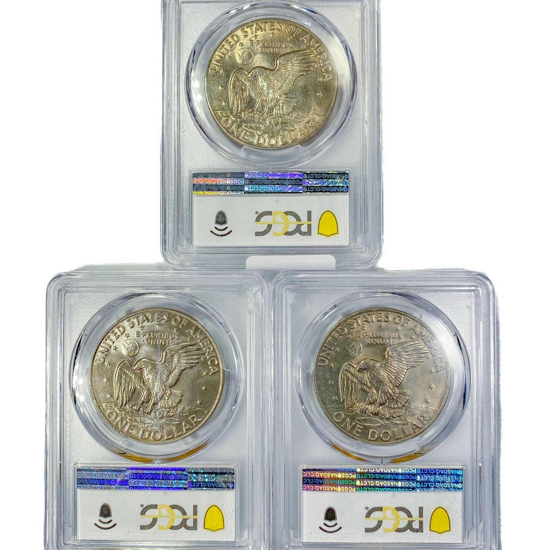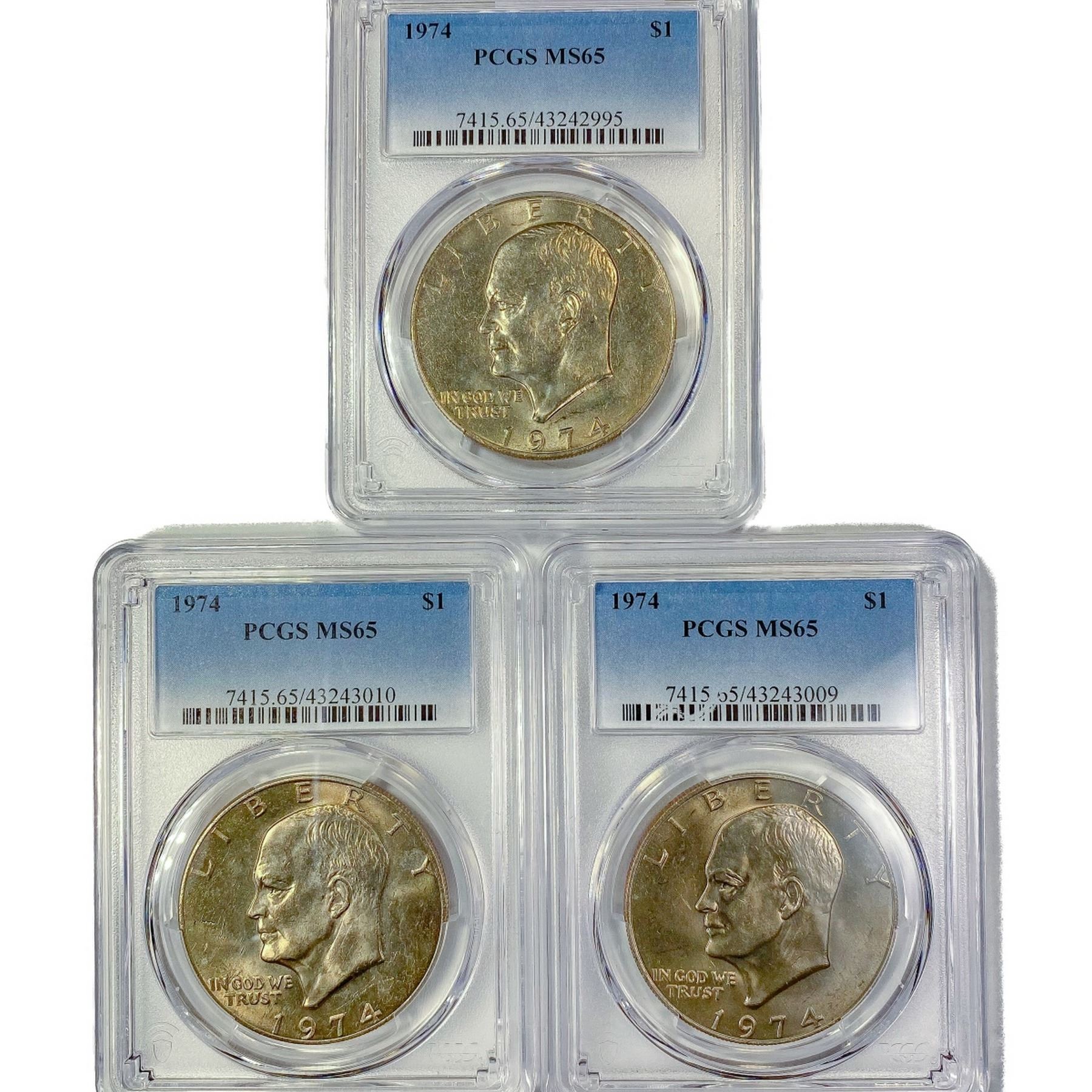 1974 Set (3) Eisenhower Silver Dollars PCGS MS65