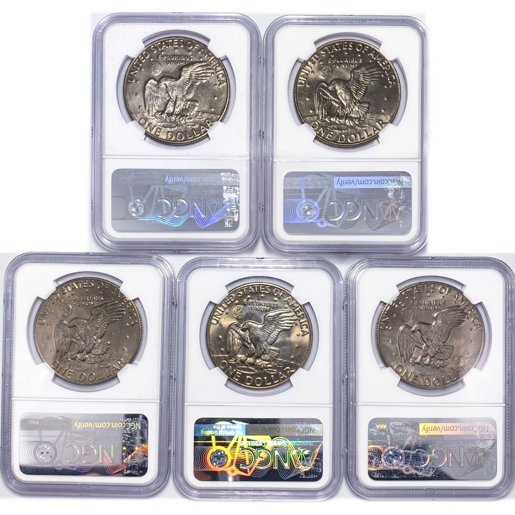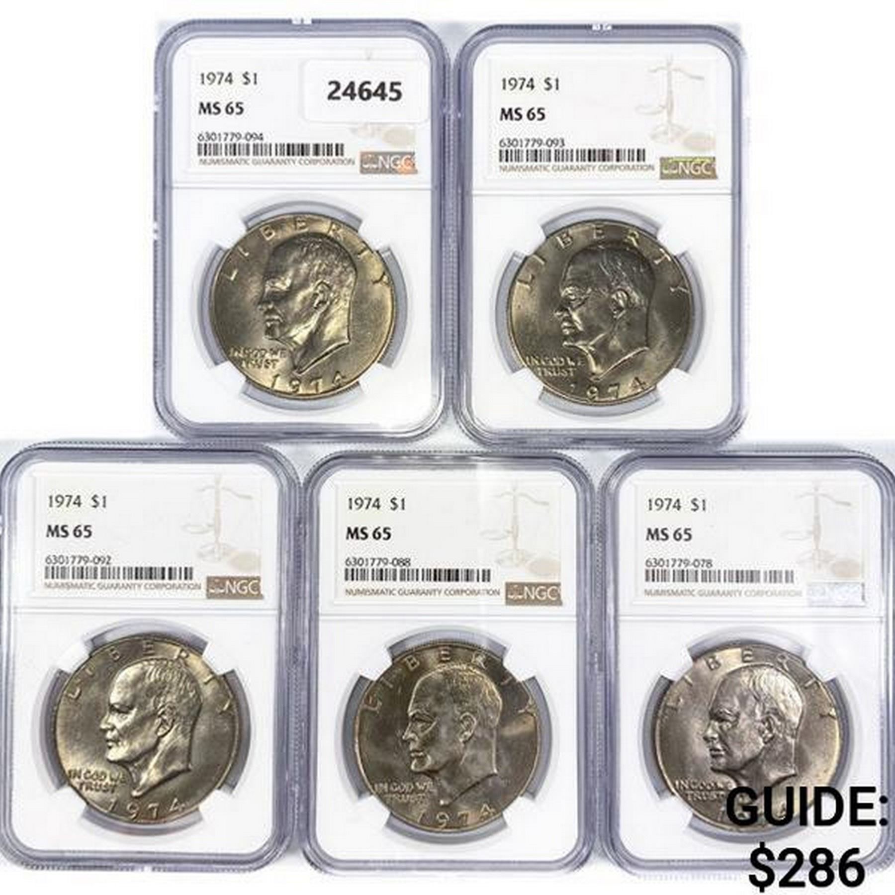 1974 Set (5) Eisenhower Silver Dollars NGC MS65