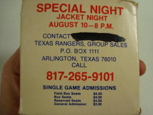 1974 TEXAS RANGERS BASEBALL in Rangers Box: Season Schedule on Box for July, August and September. (30-60)