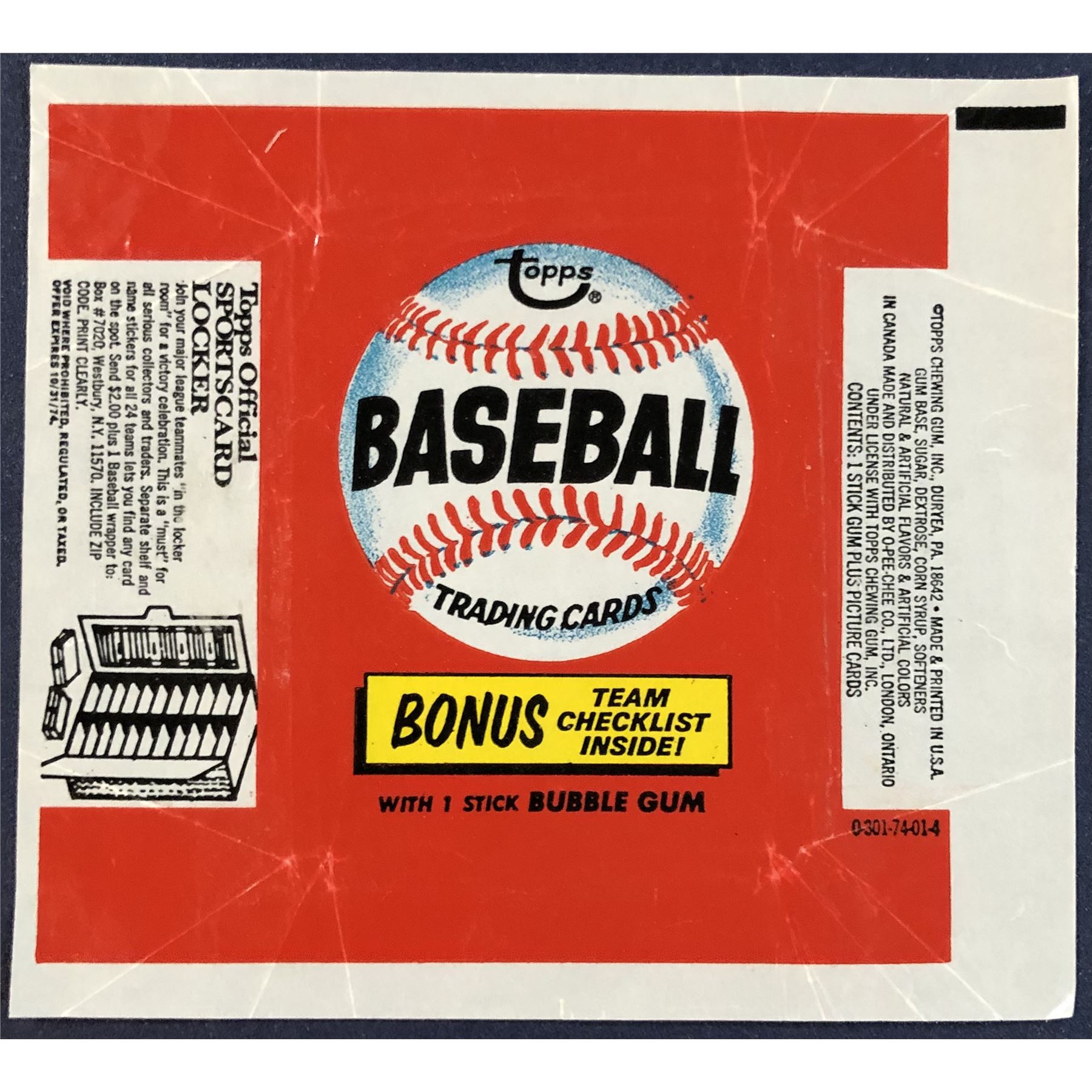 1974 TOPPS BASEBALL WRAPPER