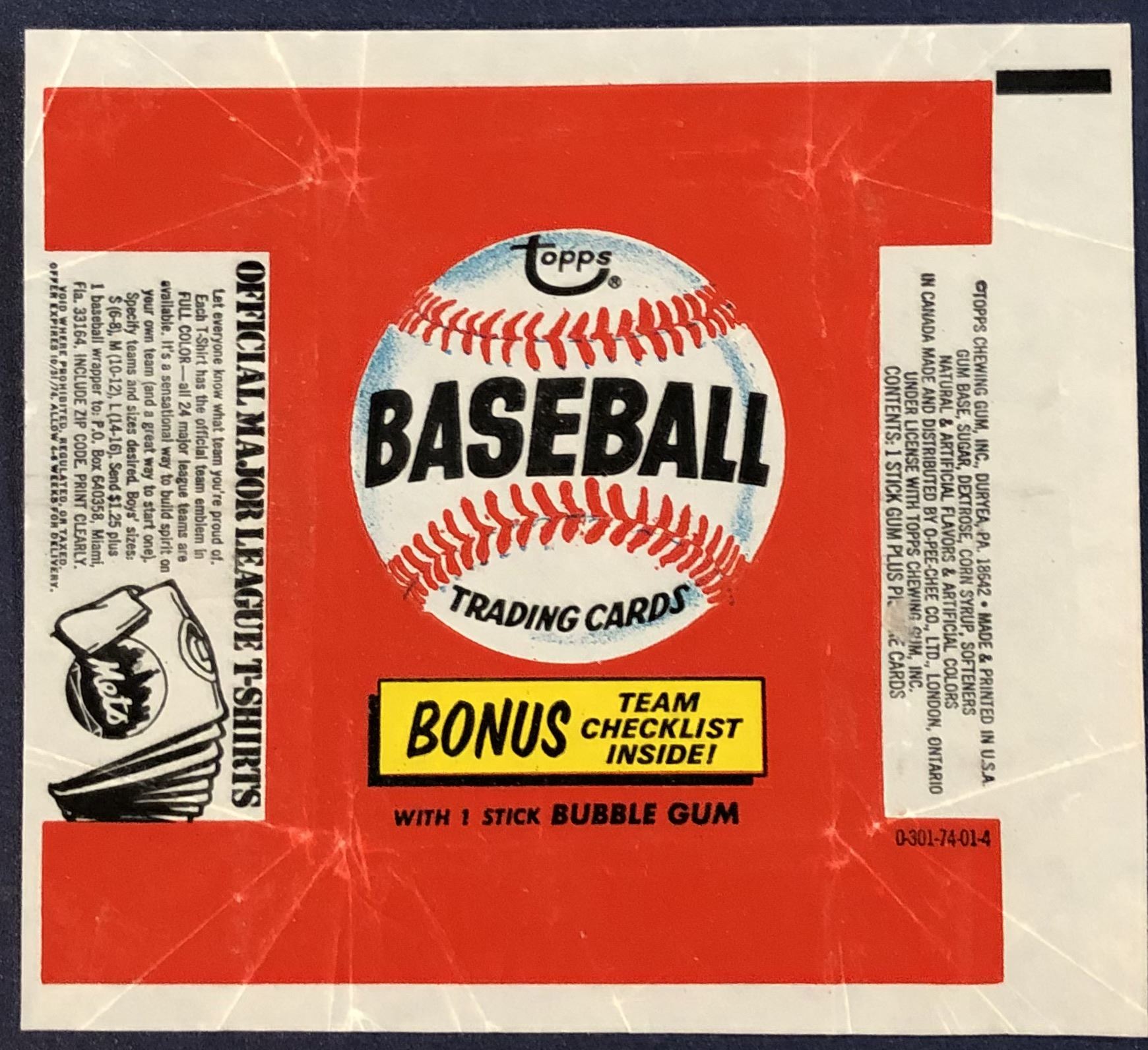 1974 TOPPS BASEBALL WRAPPER