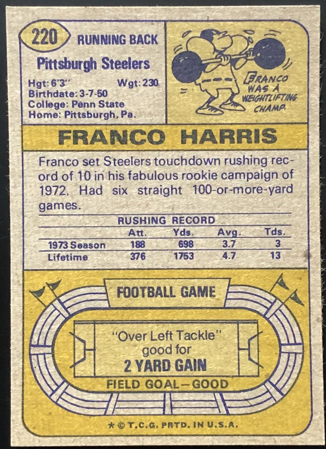 Card #220 vintage, NFL, football, hall of fame, rookie