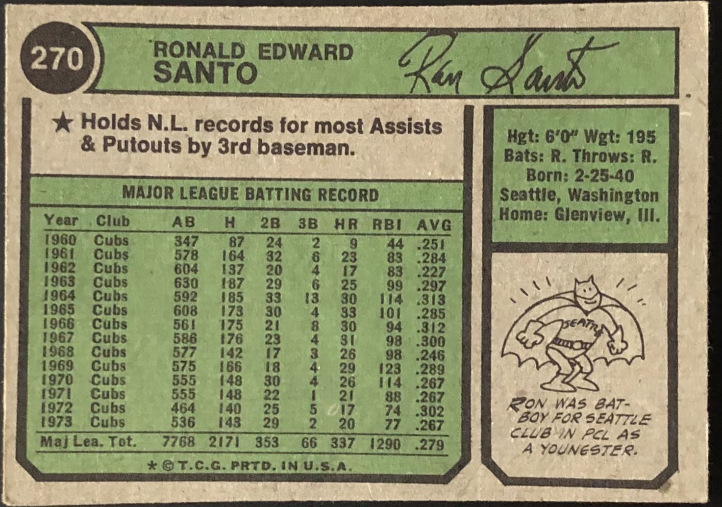 Card #270                                  MLB, baseball, vintage, hall of fame