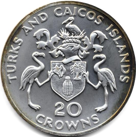 1974 TURKS AND CAICOS SILVER 20 CROWNS-CH BU+