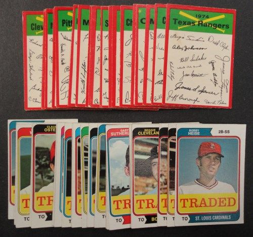 76 Topps Nice Ex, 24 cds, few marked , 1974 Topps Traded EM-NM, Est $20-$25