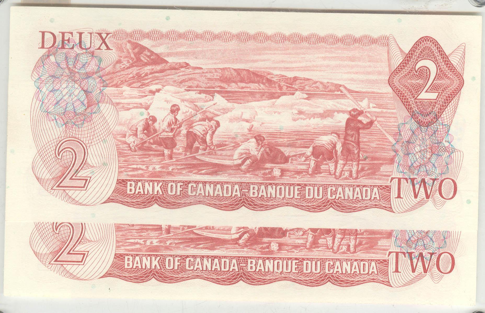 1974 Two Dollars Pair of Consecutive Replacement, BC-47aA, UNC in hard casing, Lawson Bouey, serial *RW5621487-88.