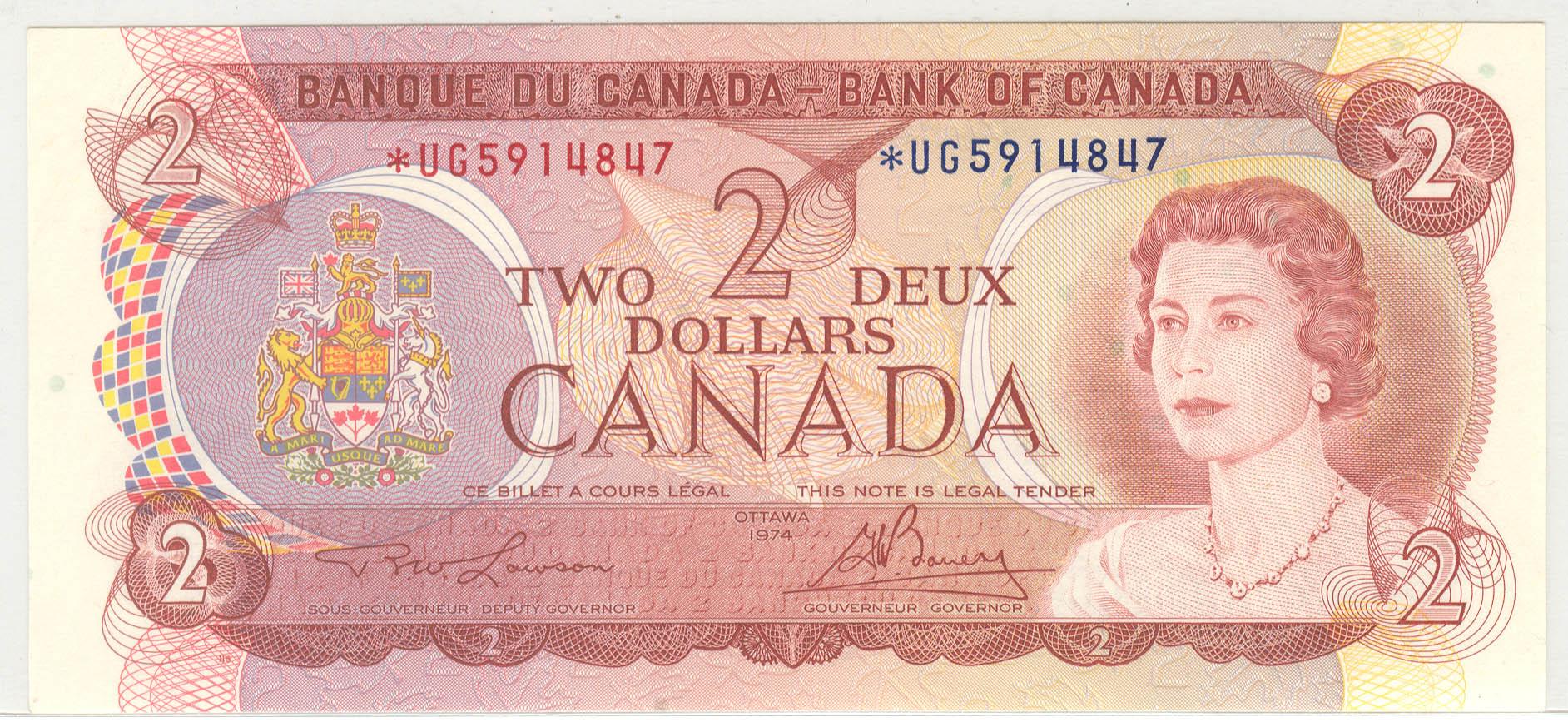 1974 Two Dollars Replacement, BC-47aA, GEM UNC, Lawson Bouey, serial *UG5914847.