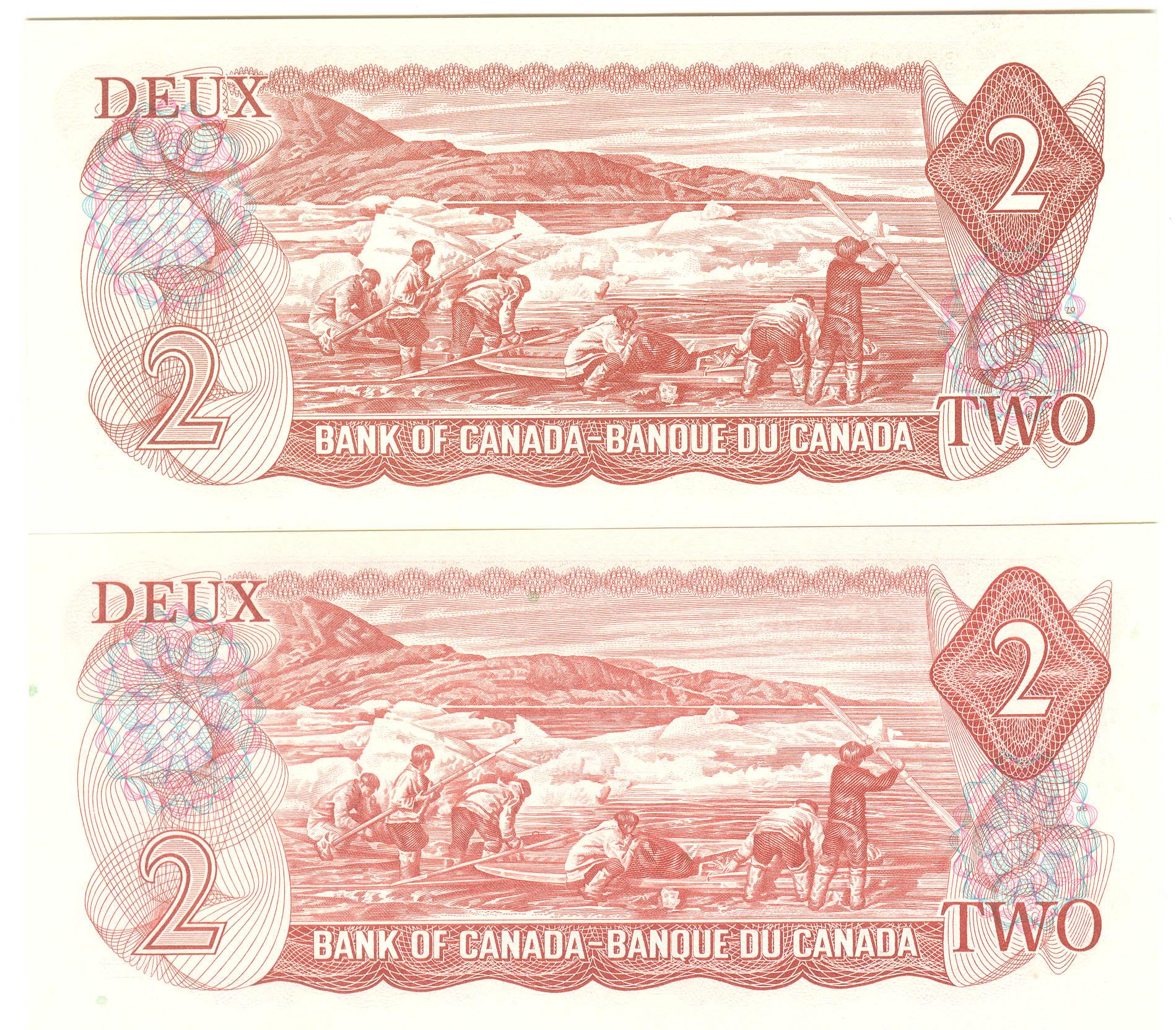 1974 Two Dollars Replacement, BC-47aA-i, GEM UNC, Lawson Bouey, serial ABX1004786 & BC-47bA, GEM UNC, Crow Bouey, serial ABX1632002. Lot of 2 notes.