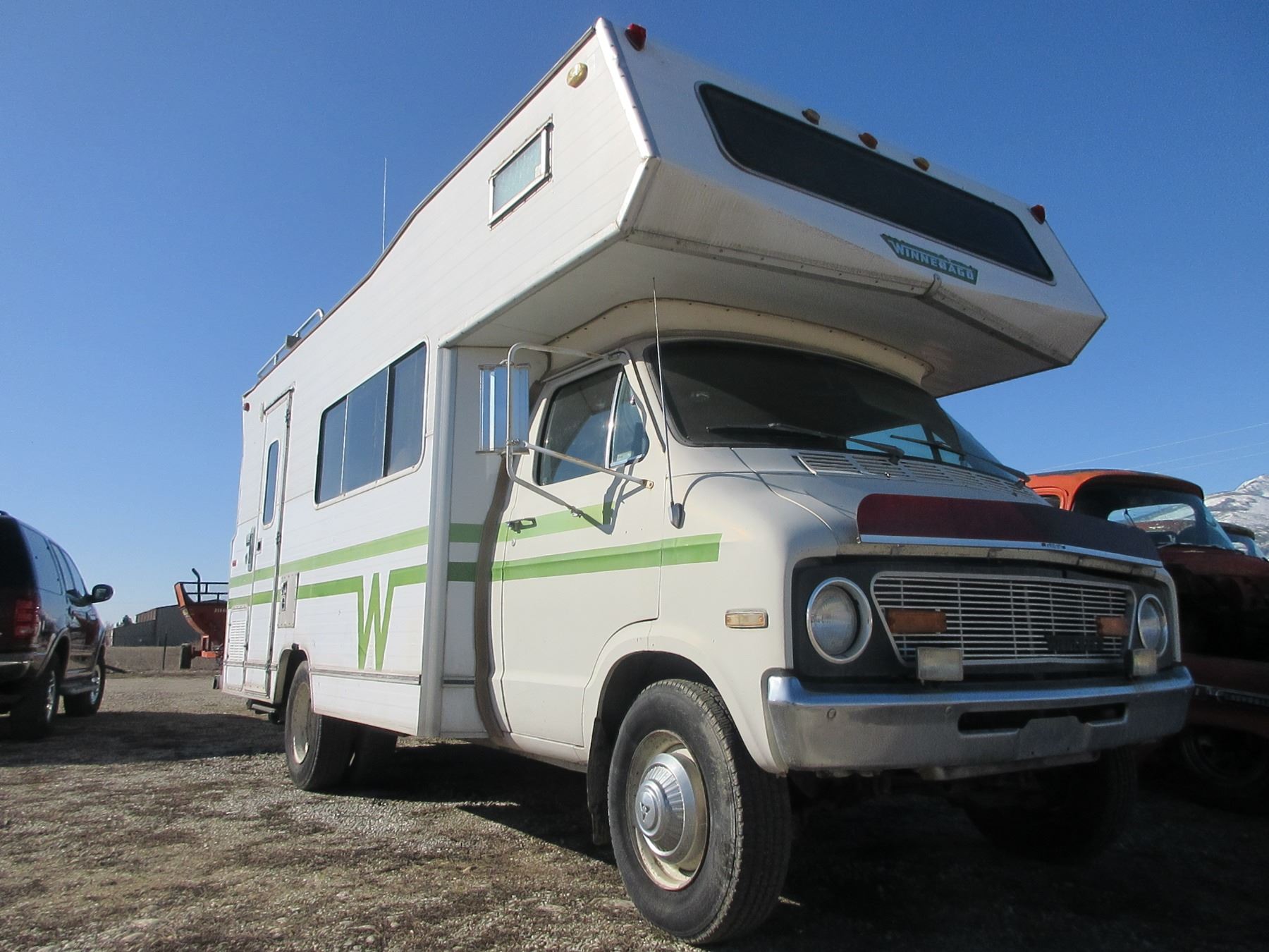 1974 Winnebago Motor Home- Cab Over- 85514 Miles- Has Been Sitting A Few Years But Runs And Drives- Seems Mechanically Sound- New Battery- Has A Roof Leak- 20'L- Dually- Automatic