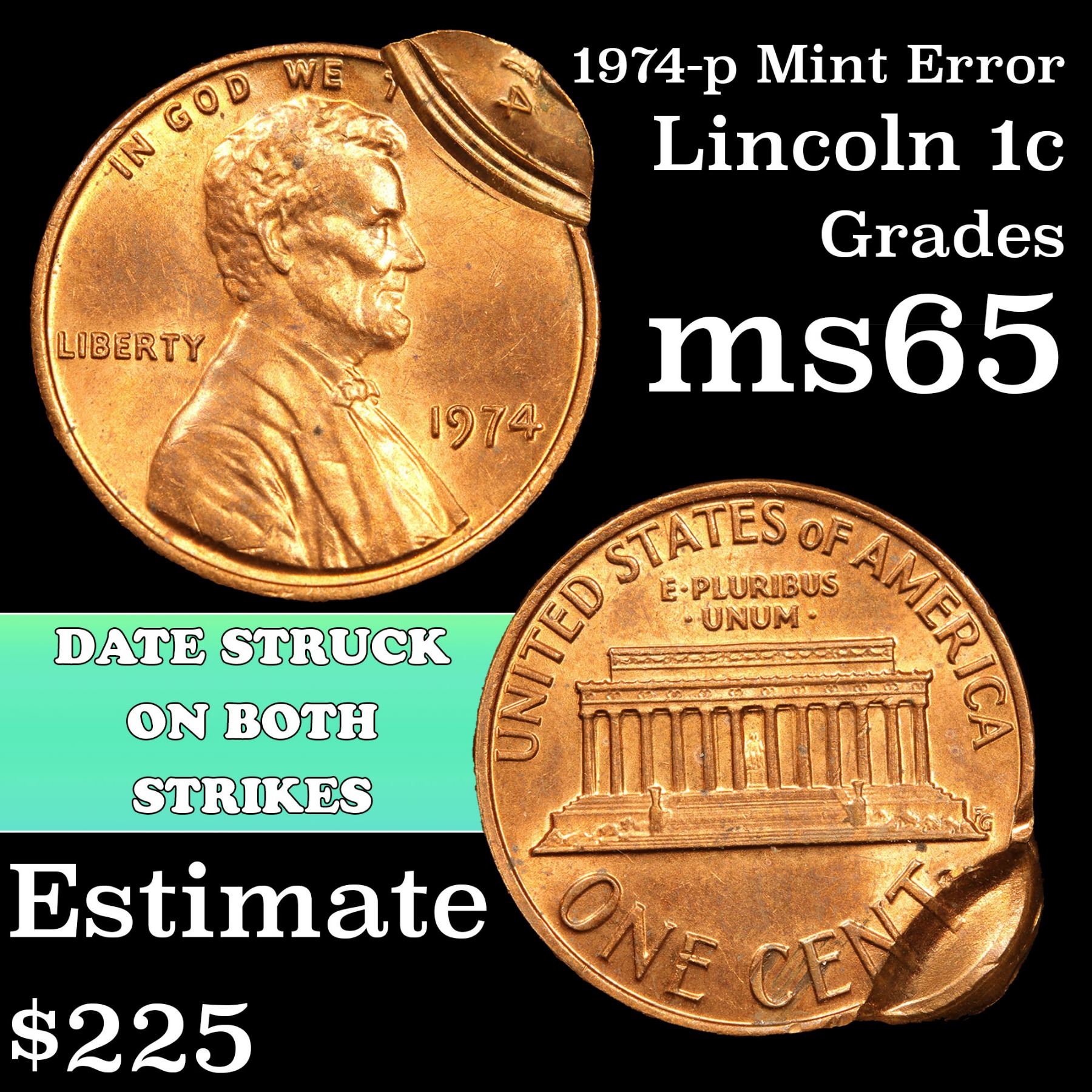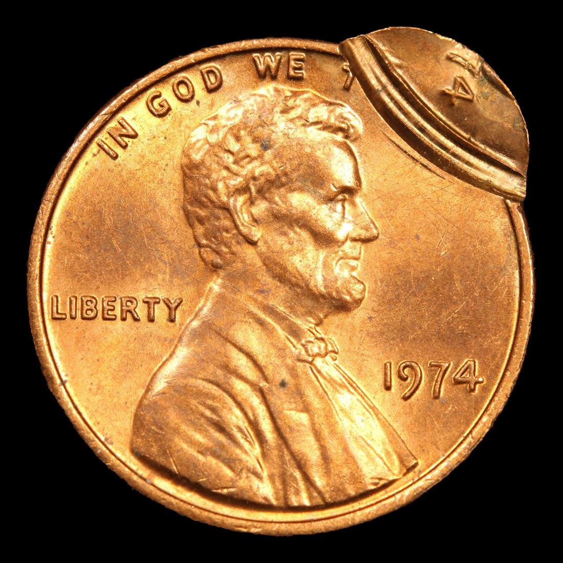 1974-p Mint Error 'Double struck w/brokage' Lincoln Cent 1c Grades GEM Unc RD.