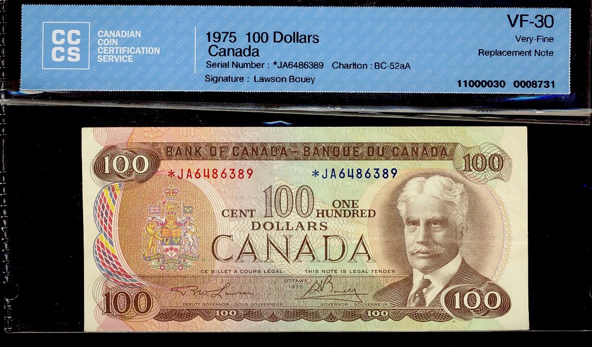 1975 $100 BC-52aA #*JA6486389 CCCS VF30.