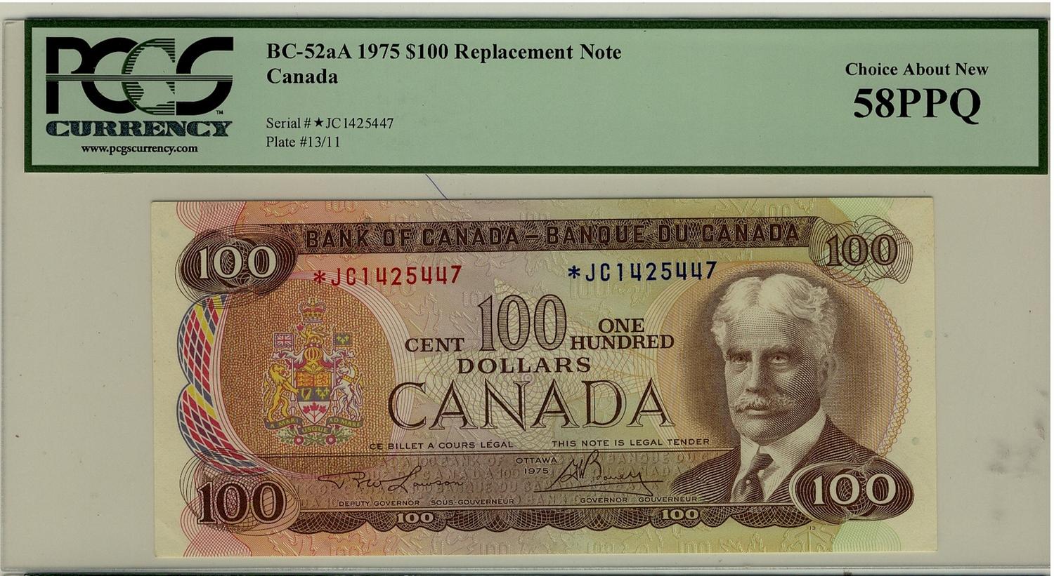 1975 $100 BC-52aA #*JC1425447 PCGS AU58PPQ.
