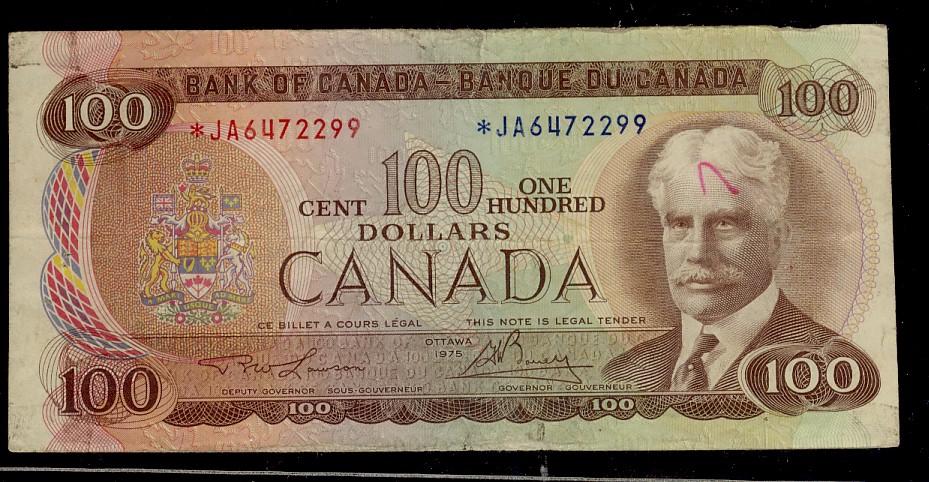 1975 $100 BC-52aA Lawson-Bouey *JA6472299 VF, small writing on face.