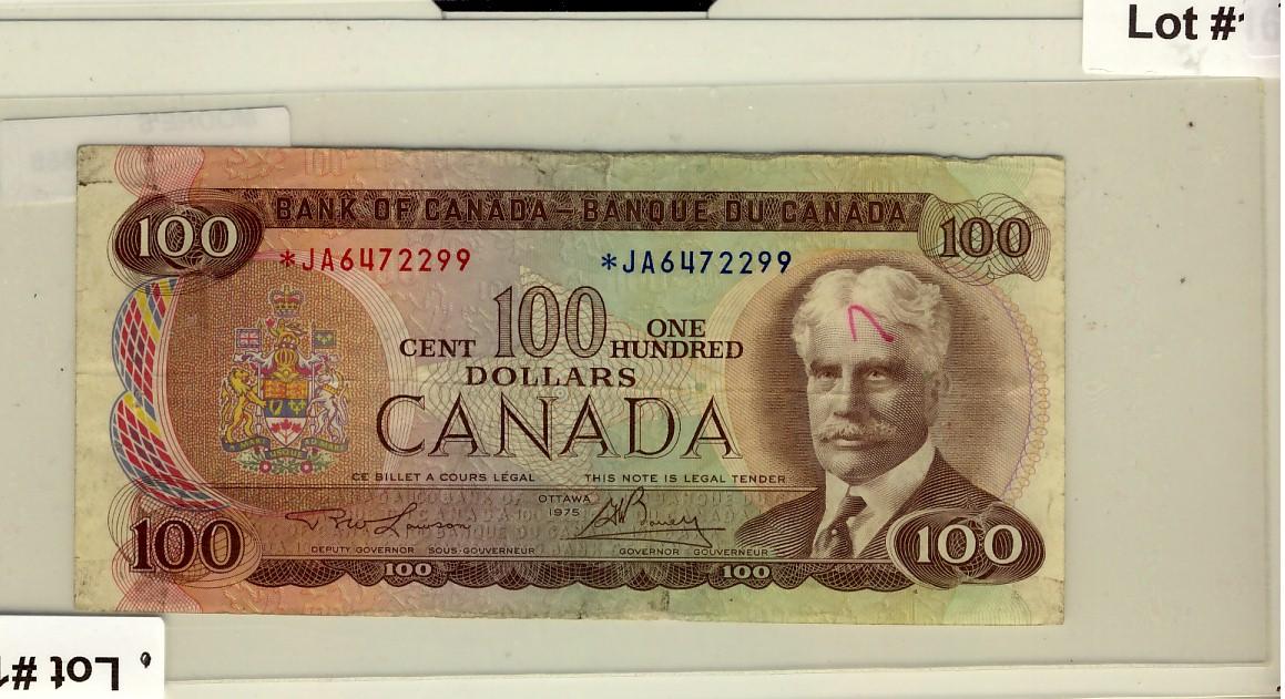 1975 $100 BC-52aA Lawson-Bouey *JA6472299 VF, small writing on face.