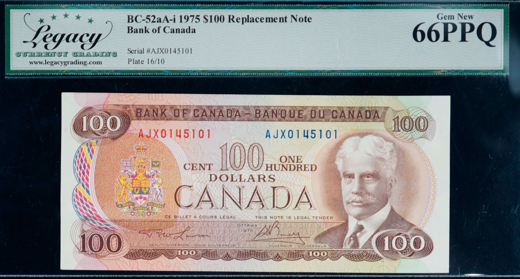 1975 $100 BC-52aA-i #AJX0145101, Legacy Superb Gem Uncirculated-66PPQ.