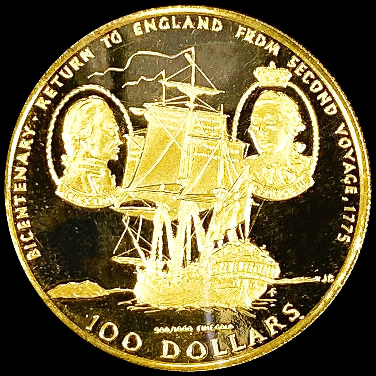 1975 $100 Cold Cook Islands Coin GEM PROOF