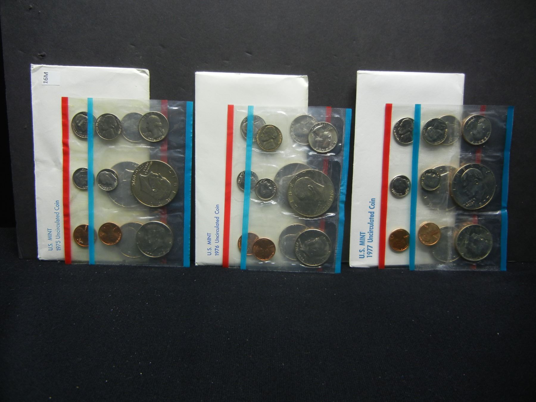 1975 1976 1977 United States Mint 12-Coin Mint Sets With Original Gov't Packaging.
