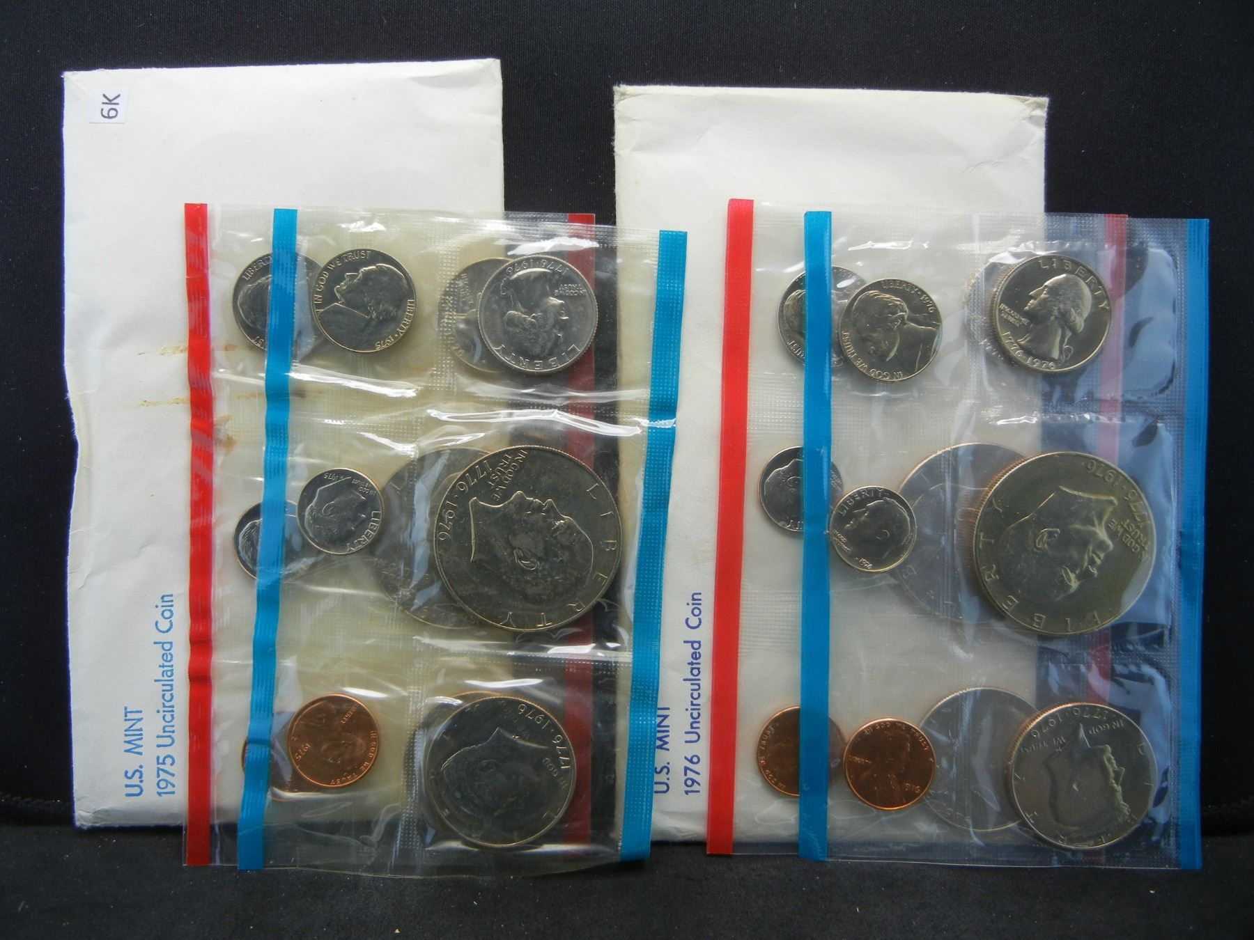1975 & 1976 United States 13 Coin Mint Sets With Original Government Packaging.