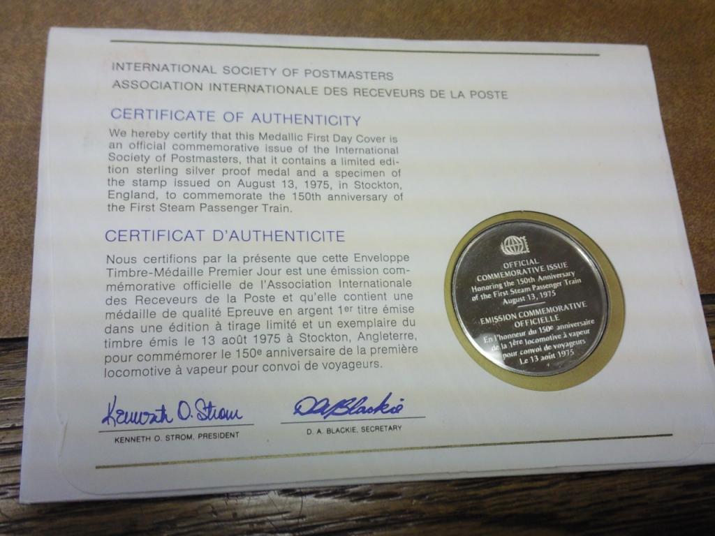 Of The 1st Steam Passanger Train, Contains: Sterling Proof Medal