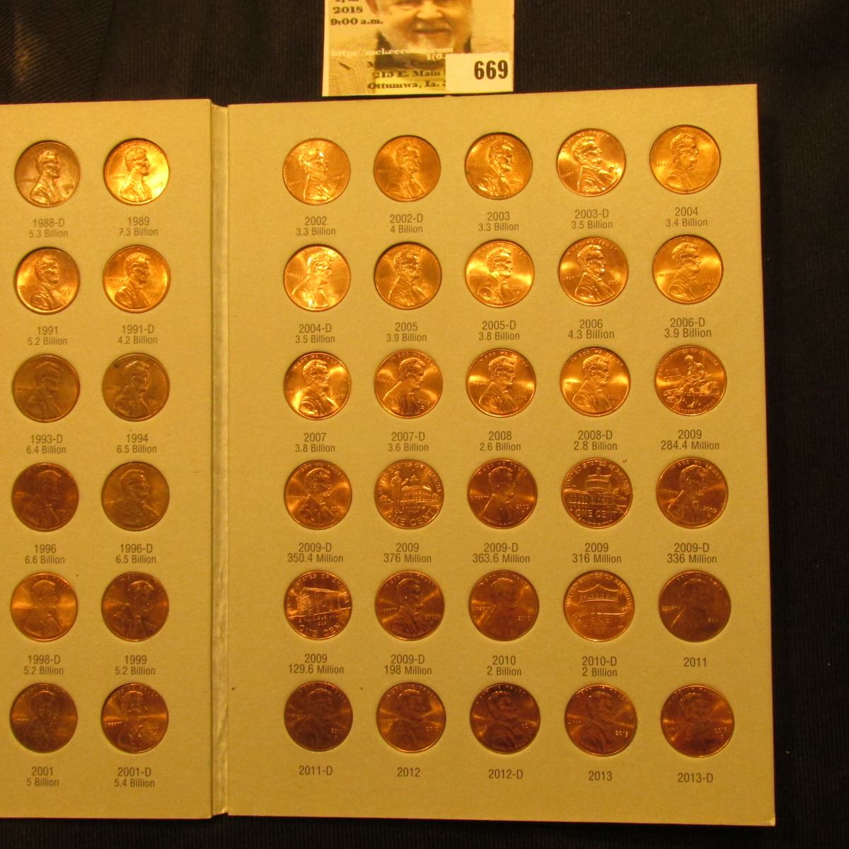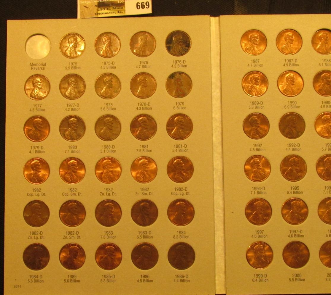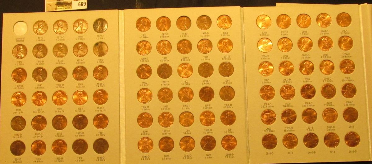 1975-2013 Complete Set of Circulation Strike Lincoln Cents in a Harris Coin folder. Many specimens are nice BU. (89 pcs.).