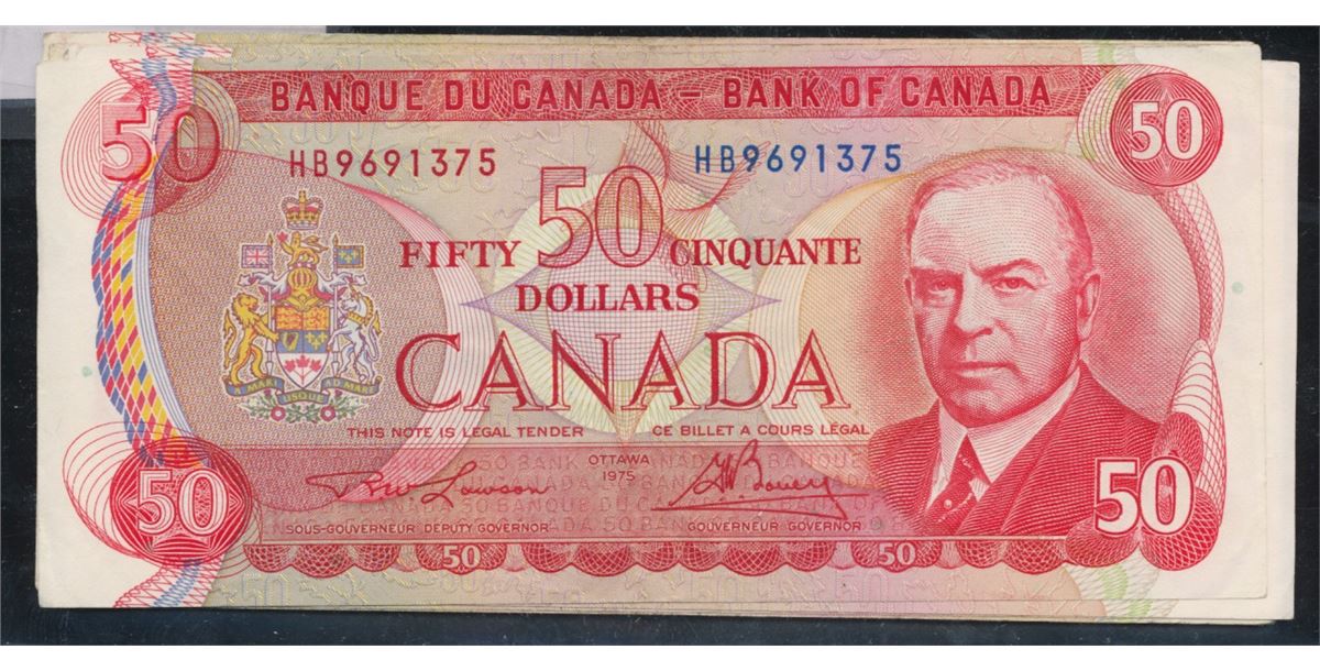 1975 $50 BC-51 Lot; includes 7 pcs VF to EF.