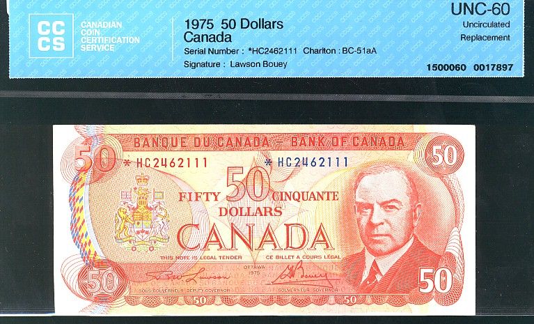 1975 $50 BC-51aA #*HC2462111 CCCS UNC60.