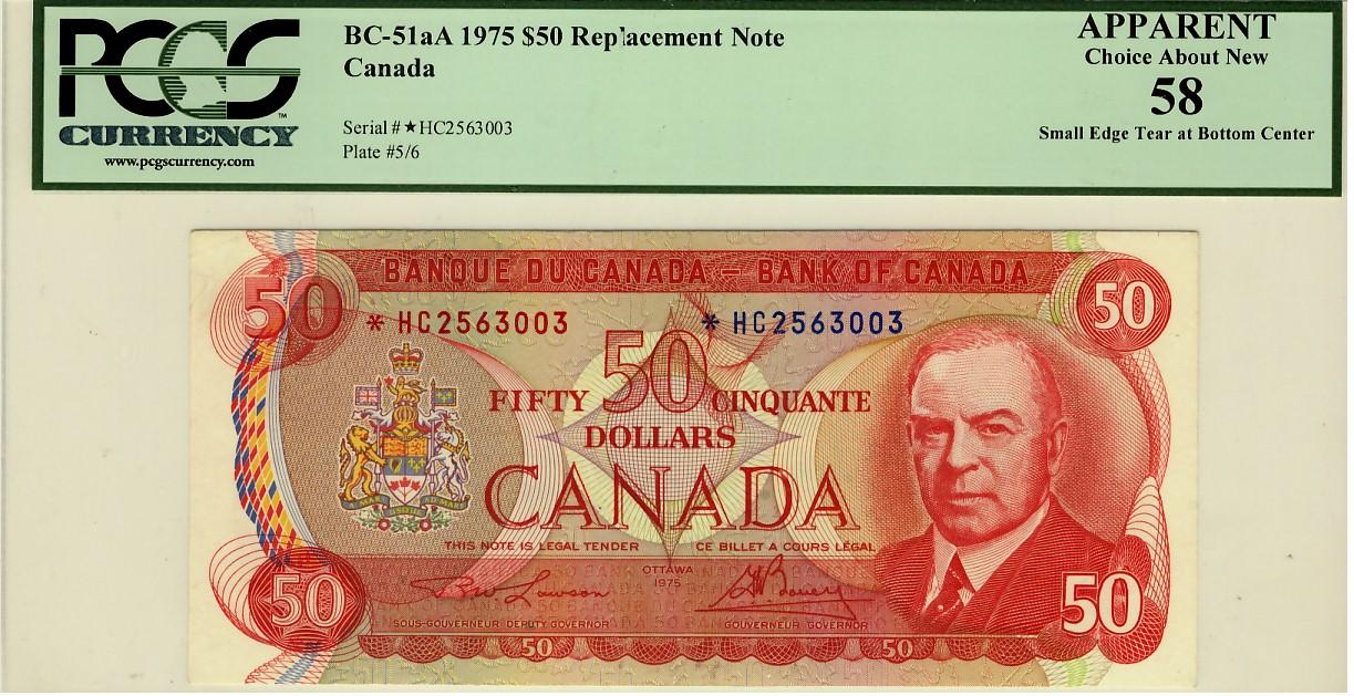 1975 $50 BC-51aA *HC2563003 PCGS AU58, sm. Tear