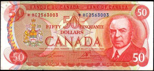 1975 Fifty Dollars Lawson-Bouey, BC-51aA Serial Number *HC2563003, VF-EF