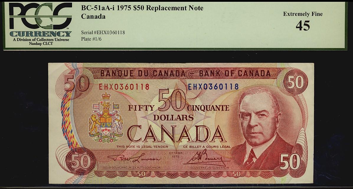 1975 $50 BC-51aA-i EHX0360118 PCGS EF45, Scarce replacement