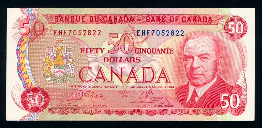1975, BC-51b, prefix EHF, Unc. A signature changeover prefix.