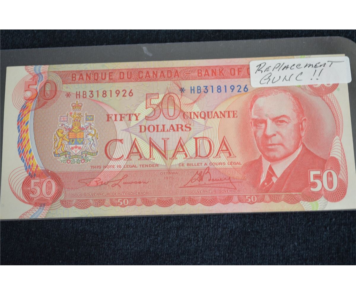 1975 $50 Canada Replacement Note - CUNC-GUNC - * HB 3181926 - Lawson/Bouey - Value: $800-$1000