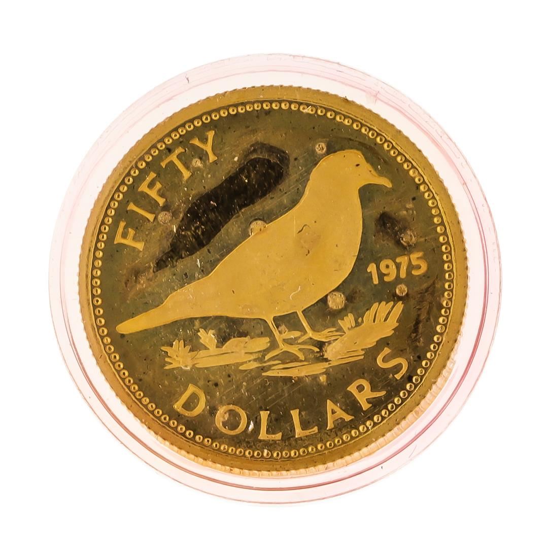 One 1975 $50 Commonwealth of the Bahamas Gold Coin.